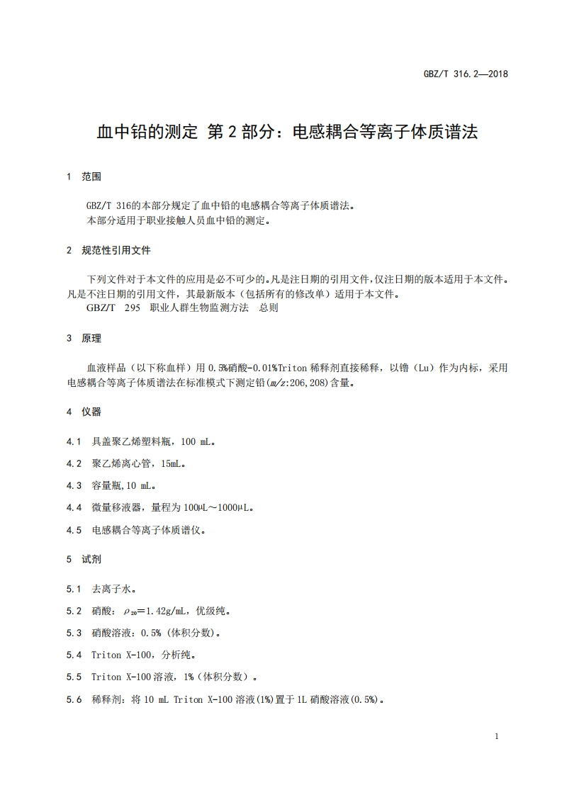 中华人民共和国国家职业卫生标准GBZ_T316.2-2018血中铅的测定第2部分_电感耦合等离子体质谱法Determinationofleadinblood.Part2_Inductivelycoupledplasmamassspectrometrymethod348072@abc5天前发布关注私信0.30MB5页035中华人民共和国国家职业卫生标准GBZ_T316.2-2018血中铅的测定第2部分_电感耦合等离子体质谱法Determinationofleadinblood.Part2_Inductivelycoupledplasmamassspectrometrymethod此内容为付费资源,请付费后查看¥16¥23黄金会员免费钻石会员免费立即购买您当前未登录!建议登陆后购买,可保存购买订单付费资源 第1页 / 共5页 第2页 / 共5页 第3页 / 共5页 试读已结束,还剩2页,您可下载完整版后进行离线阅读 THE END医学类医疗医药标准规范法律法规管理学类 喜欢就支持一下吧收藏