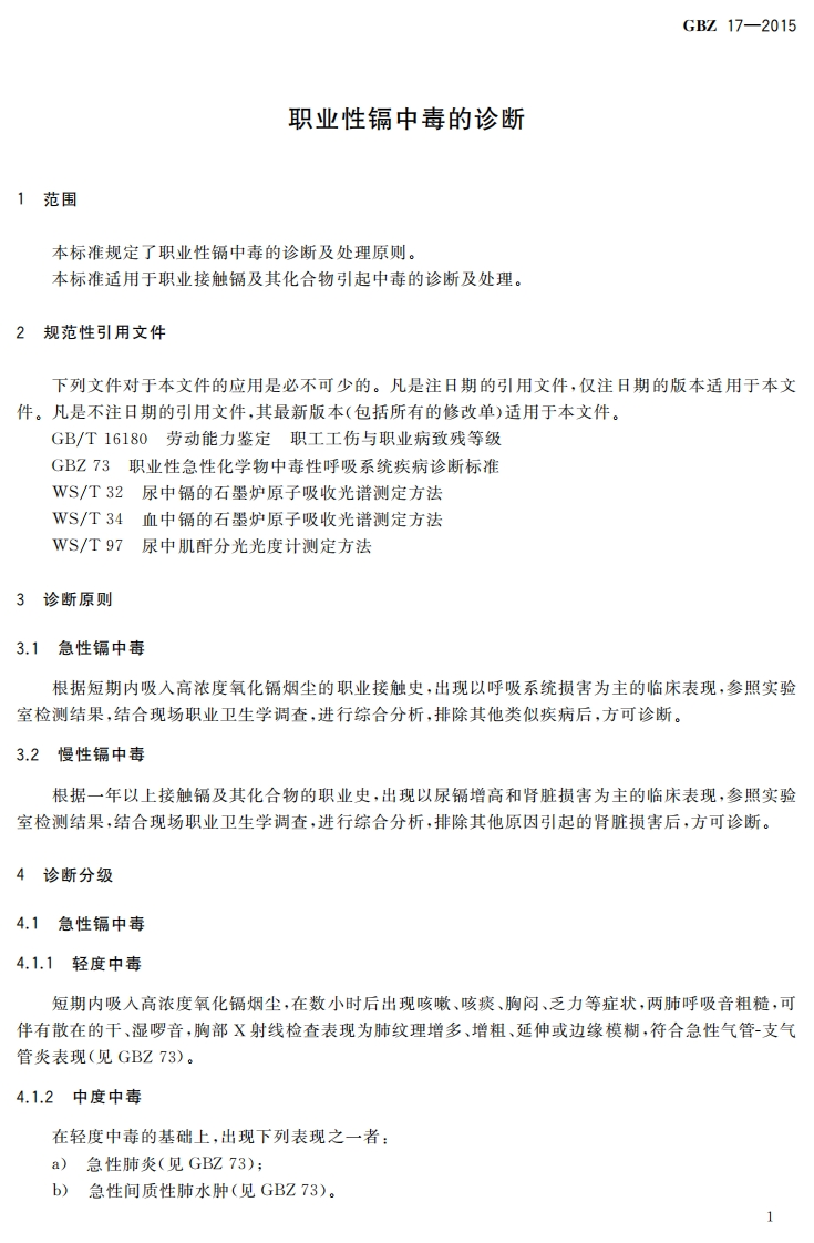 华人民共和国国家职业卫生标准GBZ17-2015代替GBZ17-2002职业性镉中毒的诊断Diagnosisofoccupationalcadmiumpoisoning348072@abc9天前发布关注私信0.35MB5页023华人民共和国国家职业卫生标准GBZ17-2015代替GBZ17-2002职业性镉中毒的诊断Diagnosisofoccupationalcadmiumpoisoning此内容为付费资源,请付费后查看¥16¥23黄金会员免费钻石会员免费立即购买您当前未登录!建议登陆后购买,可保存购买订单付费资源 第1页 / 共5页 第2页 / 共5页 第3页 / 共5页 试读已结束,还剩2页,您可下载完整版后进行离线阅读 THE END医学类医疗医药标准规范法律法规管理学类 喜欢就支持一下吧收藏