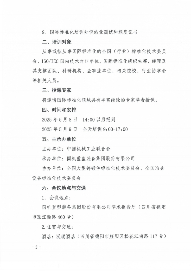 为贯彻落实《国家标准化发展纲要》和《标准化人才培养行动计划(2023-2035)》,加强机械工业标准化人才培养,以国际标准化人才赋能我国国际标准化工作高质量发展,中国机械工业联合会定于5月8日-9日在德阳举办机械工业国际标准化人才培训班。现将有关事项通知如下!一、培训内容1.解读国际标准化相关政策2.机械工业标准化情况介绍3.国际标准化发展趋势与中国制造348072@abc9天前发布关注私信2.37MB5页031为贯彻落实《国家标准化发展纲要》和《标准化人才培养行动计划(2023-2035)》,加强机械工业标准化人才培养,以国际标准化人才赋能我国国际标准化工作高质量发展,中国机械工业联合会定于5月8日-9日在德阳举办机械工业国际标准化人才培训班。现将有关事项通知如下!一、培训内容1.解读国际标准化相关政策2.机械工业标准化情况介绍3.国际标准化发展趋势与中国制造此内容为付费资源,请付费后查看¥19¥23黄金会员免费钻石会员免费立即购买您当前未登录!建议登陆后购买,可保存购买订单付费资源 第1页 / 共5页 第2页 / 共5页 试读已结束,还剩3页,您可下载完整版后进行离线阅读 THE END标准规范餐饮美食 喜欢就支持一下吧收藏