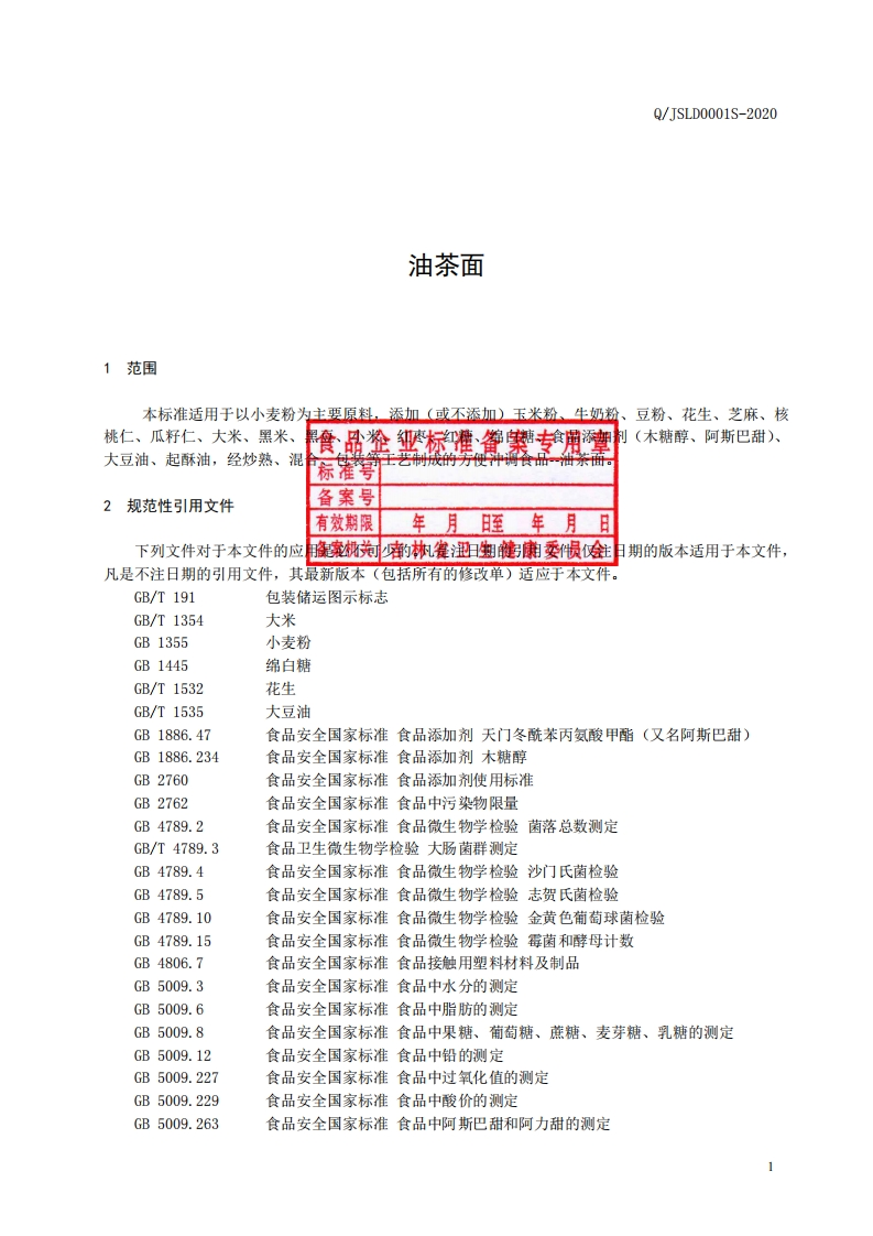 油茶面食品企业标准备案专用章标准号TSLD0001S-2020备案号221295S-2020有效期限2020年。月18日至02年o月7日备案机关吉林省卫生健康委员会Q_JSLD0001S-2020348072@abc3个月前发布关注私信0.25MB7页040油茶面食品企业标准备案专用章标准号TSLD0001S-2020备案号221295S-2020有效期限2020年。月18日至02年o月7日备案机关吉林省卫生健康委员会Q_JSLD0001S-2020此内容为付费资源,请付费后查看¥19¥23黄金会员免费钻石会员免费立即购买您当前未登录!建议登陆后购买,可保存购买订单付费资源 第1页 / 共7页 第2页 / 共7页 试读已结束,还剩5页,您可下载完整版后进行离线阅读 THE END标准规范餐饮美食 喜欢就支持一下吧收藏