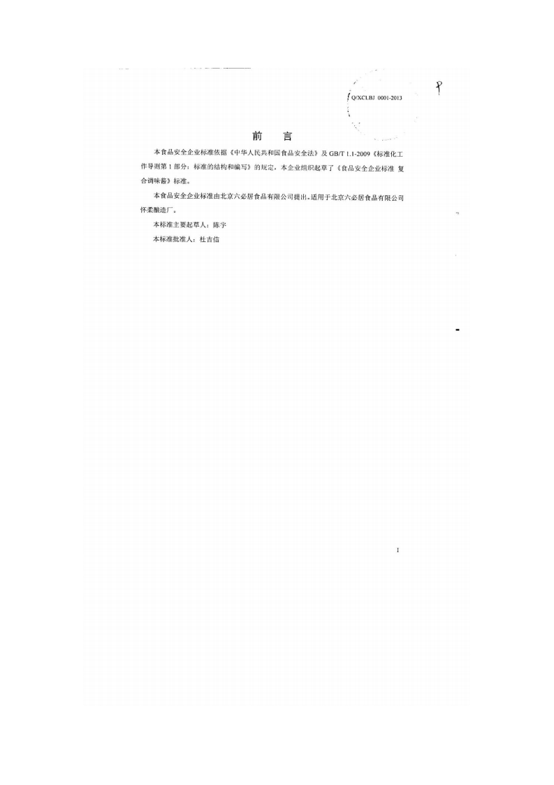 食品安全企业标准复合调味酱叄案日期_找月日有效期_三年北京市卫生局食品安全企业标准备案专用草鑫_1101020100S-2013备案期__~13年_1月19日有效期_三年2013-9-23发布2013-11-29实施北京大必居食品有限公司发布348072@abc1个月前发布关注私信1.56MB12页043食品安全企业标准复合调味酱叄案日期_找月日有效期_三年北京市卫生局食品安全企业标准备案专用草鑫_1101020100S-2013备案期__~13年_1月19日有效期_三年2013-9-23发布2013-11-29实施北京大必居食品有限公司发布此内容为付费资源,请付费后查看¥19¥23黄金会员免费钻石会员免费立即购买您当前未登录!建议登陆后购买,可保存购买订单付费资源 第1页 / 共12页 第2页 / 共12页 试读已结束,还剩10页,您可下载完整版后进行离线阅读 THE END标准规范餐饮美食 喜欢就支持一下吧收藏