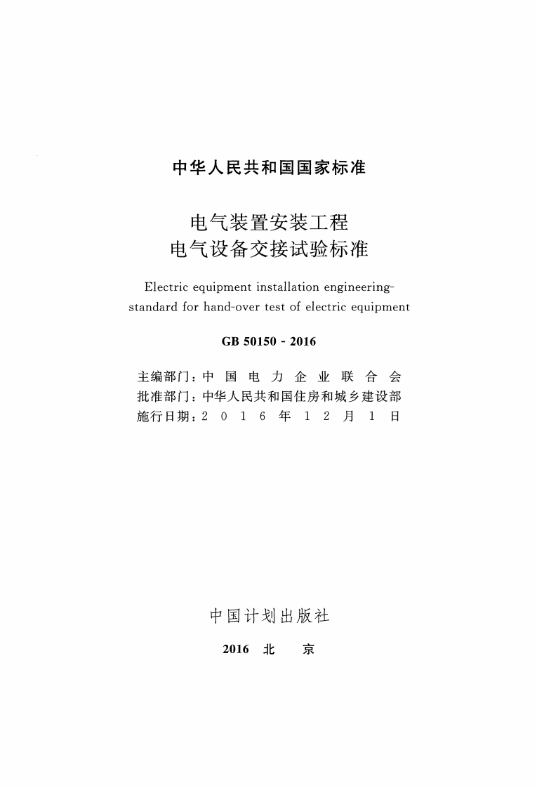 中华人民共和国国家标准GB50150-2016电气装置安装工程电气设备交接试验标准Electricequipmentinstallationengineeringstandardforhand-overtestofelectricequipment_1348072@abc1个月前发布关注私信8.15MB177页035中华人民共和国国家标准GB50150-2016电气装置安装工程电气设备交接试验标准Electricequipmentinstallationengineeringstandardforhand-overtestofelectricequipment_1此内容为付费资源,请付费后查看¥19¥23黄金会员免费钻石会员免费立即购买您当前未登录!建议登陆后购买,可保存购买订单付费资源 第1页 / 共177页 第2页 / 共177页 试读已结束,还剩175页,您可下载完整版后进行离线阅读 THE END机械电气设计标准规范 喜欢就支持一下吧收藏