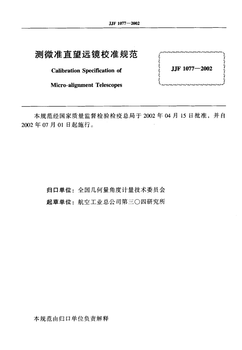 测微准直望远镜校准规范librationSpecificationofMicro-alignmentTelescopes15发布2002-07-01实施_测做佳且圣边说发准规池CalibrationSpecificationofMicro-alignmentTelescopes04-15发布2002-07-01实施家质量监督检验检疫总局发布348072@abc9天前发布关注私信0.28MB13页042测微准直望远镜校准规范librationSpecificationofMicro-alignmentTelescopes15发布2002-07-01实施_测做佳且圣边说发准规池CalibrationSpecificationofMicro-alignmentTelescopes04-15发布2002-07-01实施家质量监督检验检疫总局发布此内容为付费资源,请付费后查看¥19¥23黄金会员免费钻石会员免费立即购买您当前未登录!建议登陆后购买,可保存购买订单付费资源 第1页 / 共13页 第2页 / 共13页 第3页 / 共13页 试读已结束,还剩10页,您可下载完整版后进行离线阅读 THE END标准规范餐饮美食 喜欢就支持一下吧收藏