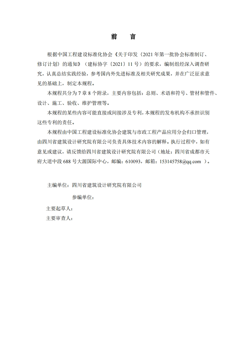 承插压合式不锈钢管道应用技术规程Technicalspecificationforapplicationofinsertpress-fittingconnectionstainlesssteelpipe(征求意见稿)(提交反馈意见时,请将有关专利连同支持性文件一并附上)348072@abc7天前发布关注私信2.29MB62页020承插压合式不锈钢管道应用技术规程Technicalspecificationforapplicationofinsertpress-fittingconnectionstainlesssteelpipe(征求意见稿)(提交反馈意见时,请将有关专利连同支持性文件一并附上)此内容为付费资源,请付费后查看¥19¥23黄金会员免费钻石会员免费立即购买您当前未登录!建议登陆后购买,可保存购买订单付费资源 第1页 / 共62页 第2页 / 共62页 第3页 / 共62页 试读已结束,还剩59页,您可下载完整版后进行离线阅读 THE END标准规范餐饮美食 喜欢就支持一下吧收藏