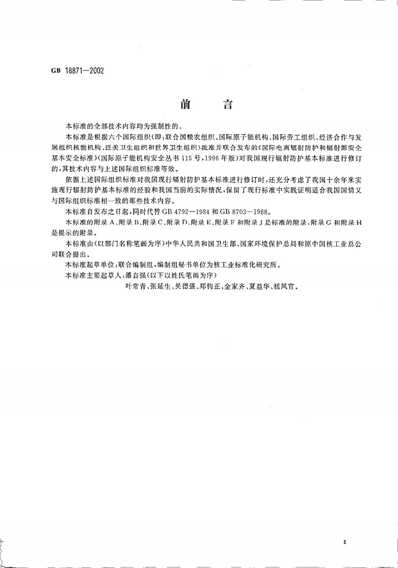 电离辐射防护与辐射源安全基本标准(GB18871-2002)348072@abc1个月前发布关注私信7.36MB204页028电离辐射防护与辐射源安全基本标准(GB18871-2002)此内容为付费资源,请付费后查看¥19¥23黄金会员免费钻石会员免费立即购买您当前未登录!建议登陆后购买,可保存购买订单付费资源 第1页 / 共204页 第2页 / 共204页 第3页 / 共204页 试读已结束,还剩201页,您可下载完整版后进行离线阅读 THE END标准规范餐饮美食 喜欢就支持一下吧收藏