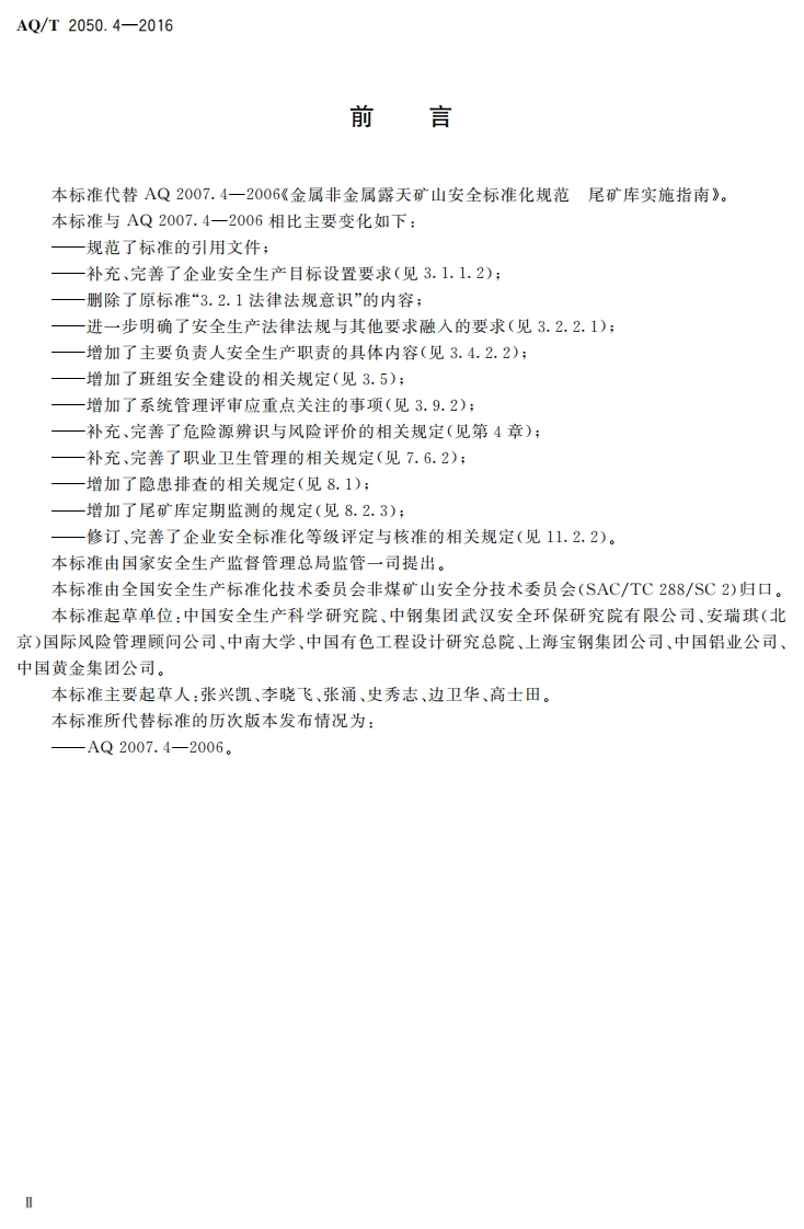 091-2016AQ人民共和国安全生产行业标准AO_T2050.4-2016代替AQ2007.4-2006金属非金属矿山安全标准化规范尾矿库实施指南Theapplicableguideofstandardizedspecificationofworksafety348072@abc13天前发布关注私信1.68MB19页040091-2016AQ人民共和国安全生产行业标准AO_T2050.4-2016代替AQ2007.4-2006金属非金属矿山安全标准化规范尾矿库实施指南Theapplicableguideofstandardizedspecificationofworksafety此内容为付费资源,请付费后查看¥19¥23黄金会员免费钻石会员免费立即购买您当前未登录!建议登陆后购买,可保存购买订单付费资源 第1页 / 共19页 第2页 / 共19页 第3页 / 共19页 试读已结束,还剩16页,您可下载完整版后进行离线阅读 THE END标准规范餐饮美食 喜欢就支持一下吧收藏
