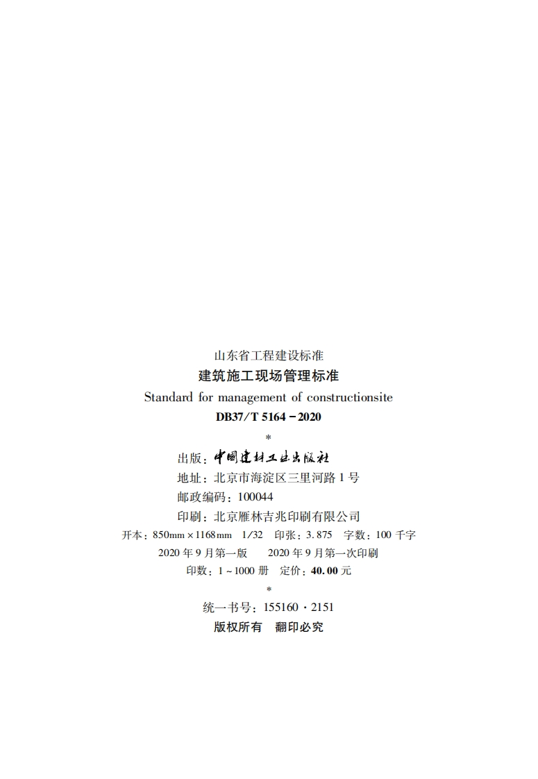 DB37_T5164-202建筑於Standardfor2020-06-28发布551602151统一书号_155160·2151安价_40.00元山东省住房山东省市348072@abc10天前发布关注私信10.17MB123页047DB37_T5164-202建筑於Standardfor2020-06-28发布551602151统一书号_155160·2151安价_40.00元山东省住房山东省市此内容为付费资源,请付费后查看¥19¥23黄金会员免费钻石会员免费立即购买您当前未登录!建议登陆后购买,可保存购买订单付费资源 第1页 / 共123页 第2页 / 共123页 第3页 / 共123页 试读已结束,还剩120页,您可下载完整版后进行离线阅读 THE END标准规范餐饮美食 文本预览 山东省工程建设标准DBDB37/T5164-2020J10560-2020建筑施工现场管理标准Standard for management of constructionsite2020-06-28发布2020-10-01实施山东省住房和城乡建设厅联合发布统一书号:155160·215山东省市场监督管理局01551021定价:40.0元 查看更多 收起部分 喜欢就支持一下吧收藏