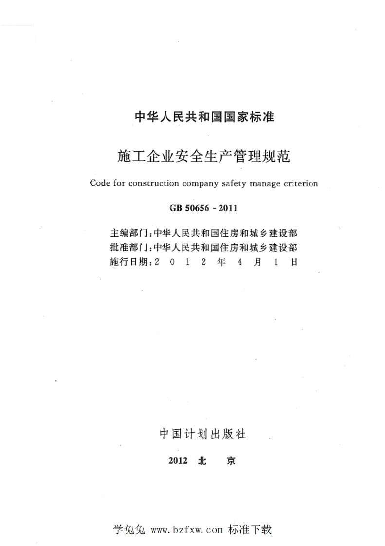 DC中华人民共和国国家标准GB50656-2011施工企业安全生产管理规范Codeforconstructioncompanysafetymanagecriterion348072@abc9天前发布关注私信7.47MB58页020DC中华人民共和国国家标准GB50656-2011施工企业安全生产管理规范Codeforconstructioncompanysafetymanagecriterion此内容为付费资源,请付费后查看¥19¥23黄金会员免费钻石会员免费立即购买您当前未登录!建议登陆后购买,可保存购买订单付费资源 第1页 / 共58页 第2页 / 共58页 第3页 / 共58页 试读已结束,还剩55页,您可下载完整版后进行离线阅读 THE END标准规范餐饮美食 文本预览 UDC中华人民共和国国家标准PGB50656-2011施工企业安全生产管理规范Code for construction company safety manage criterion2011-07-26发布2012-04-01实施中华人民共和国住房和城乡建设部中华人民共和国国家质量监督检验检疫总局联合发布学兔兔www.bzfxw..com标准下载 查看更多 收起部分 喜欢就支持一下吧收藏