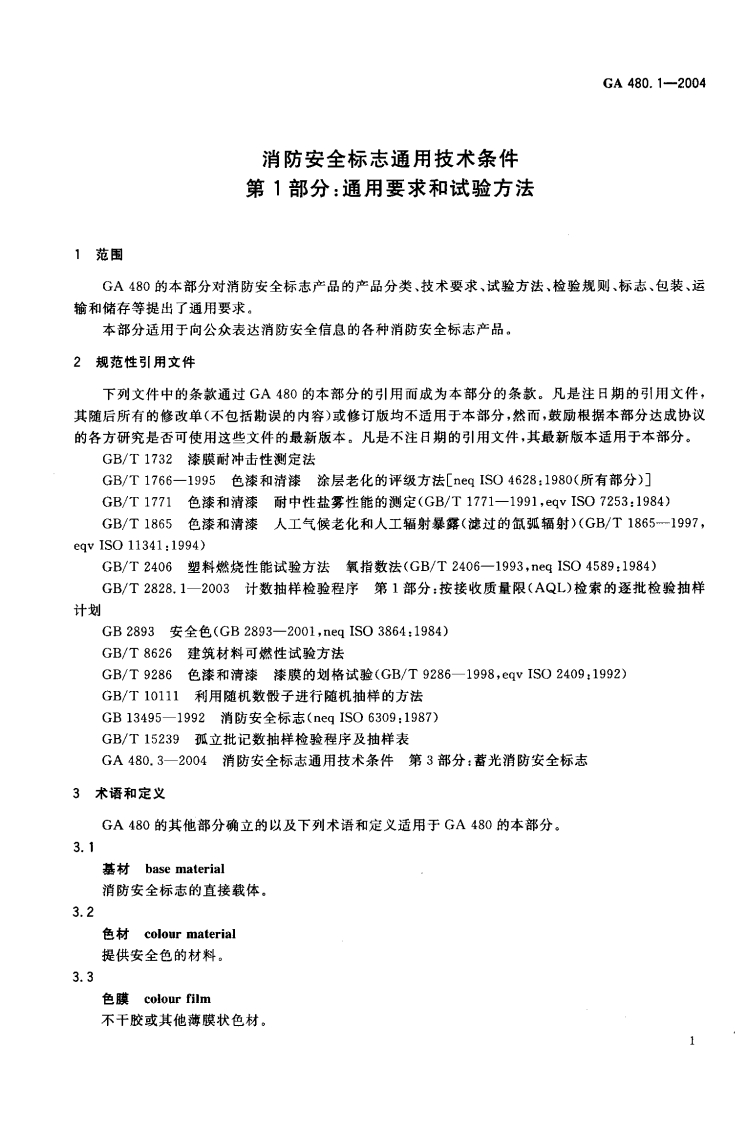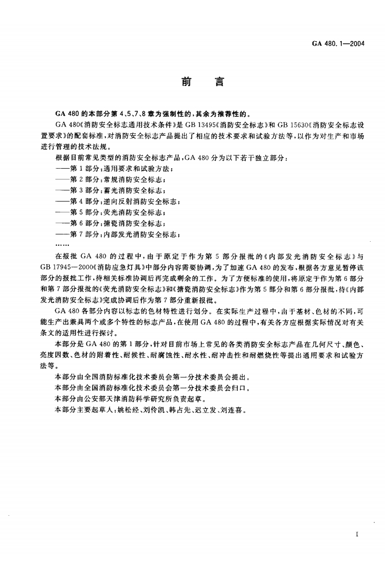 GA480.1-2004消防安全标志通用技术条件第1部分_通用要求和试验方法RulesfortestingoffiresafetysignsPart1_Generalrequirementsandtestingmethods03-18发布2004-10-01实施中华人民共和国公安部发布348072@abc12天前发布关注私信0.53MB11页037GA480.1-2004消防安全标志通用技术条件第1部分_通用要求和试验方法RulesfortestingoffiresafetysignsPart1_Generalrequirementsandtestingmethods03-18发布2004-10-01实施中华人民共和国公安部发布此内容为付费资源,请付费后查看¥19¥23黄金会员免费钻石会员免费立即购买您当前未登录!建议登陆后购买,可保存购买订单付费资源 第1页 / 共11页 第2页 / 共11页 第3页 / 共11页 试读已结束,还剩8页,您可下载完整版后进行离线阅读 THE END标准规范餐饮美食 文本预览 L04A中华人民共和国公共安全行业标准GA480.1-2004消防安全标志通用技术条件第1部分:通用要求和试验方法Rules for testing of fire safety signs-Part 1:General requirements and testing methods2004-03-18发布2004-10-01实施中华人民共和国公安部发布 查看更多 收起部分 喜欢就支持一下吧收藏