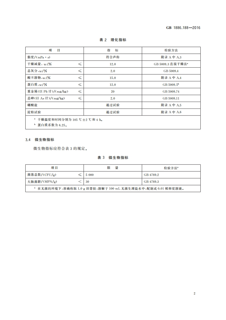GB1886.188-2016食品安全国家标准田菁胶食品添加剂_食品安全国家标准田菁胶食品添加剂348072@abc2个月前发布关注私信0.24MB5页034GB1886.188-2016食品安全国家标准田菁胶食品添加剂_食品安全国家标准田菁胶食品添加剂此内容为付费资源,请付费后查看¥19¥23黄金会员免费钻石会员免费立即购买您当前未登录!建议登陆后购买,可保存购买订单付费资源 第1页 / 共5页 第2页 / 共5页 第3页 / 共5页 试读已结束,还剩2页,您可下载完整版后进行离线阅读 THE END标准规范餐饮美食 文本预览 GB中华人民共和国国家标准GB1886.188-2016食品安全国家标准食品添加剂田菁胶2016-08-31发布2017-01-01实施中华人民共和国国家卫生和计划生育委员会发布 查看更多 收起部分 喜欢就支持一下吧收藏