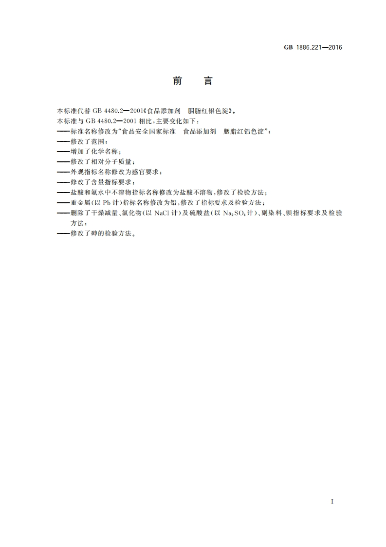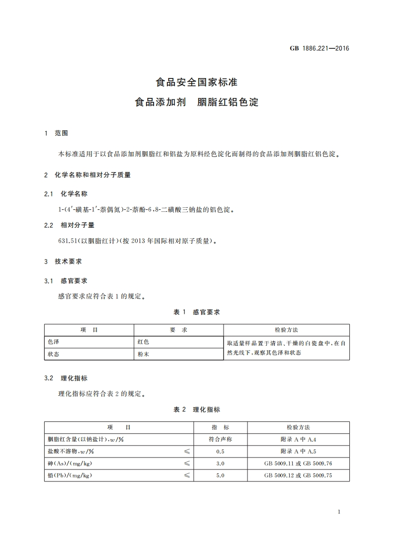 GB1886.221-2016食品安全国家标准食品添加剂胭脂红铝色淀_食品安全国家标准食品添加剂胭脂红铝色348072@abc2个月前发布关注私信0.31MB9页027GB1886.221-2016食品安全国家标准食品添加剂胭脂红铝色淀_食品安全国家标准食品添加剂胭脂红铝色此内容为付费资源,请付费后查看¥19¥23黄金会员免费钻石会员免费立即购买您当前未登录!建议登陆后购买,可保存购买订单付费资源 第1页 / 共9页 第2页 / 共9页 第3页 / 共9页 试读已结束,还剩6页,您可下载完整版后进行离线阅读 THE END标准规范餐饮美食 文本预览 GB中华人民共和国国家标准GB1886.221-2016食品安全国家标准食品添加剂胭脂红铝色淀2016-08-31发布2017-01-01实施中华人民共和国国家卫生和计划生育委员会发布 查看更多 收起部分 喜欢就支持一下吧收藏