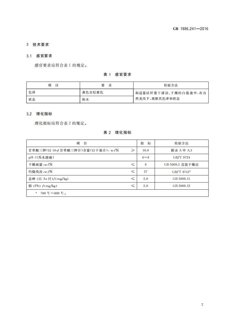GB1886.241-2016食品安全国家标准食品添加剂甘草酸三钾_食品安全国家标准食品添加剂甘草酸三钾348072@abc4天前发布关注私信0.25MB6页049GB1886.241-2016食品安全国家标准食品添加剂甘草酸三钾_食品安全国家标准食品添加剂甘草酸三钾此内容为付费资源,请付费后查看¥19¥23黄金会员免费钻石会员免费立即购买您当前未登录!建议登陆后购买,可保存购买订单付费资源 第1页 / 共6页 第2页 / 共6页 第3页 / 共6页 试读已结束,还剩3页,您可下载完整版后进行离线阅读 THE END标准规范餐饮美食 文本预览 GB中华人民共和国国家标准GB1886.241-2016食品安全国家标准食品添加剂甘草酸三钾2016-08-31发布2017-01-01实施中华人民共和国国家卫生和计划生育委员会发布 查看更多 收起部分 喜欢就支持一下吧收藏
