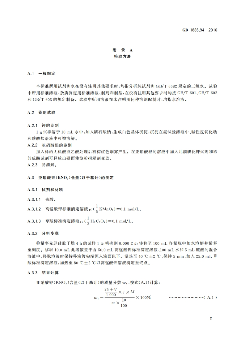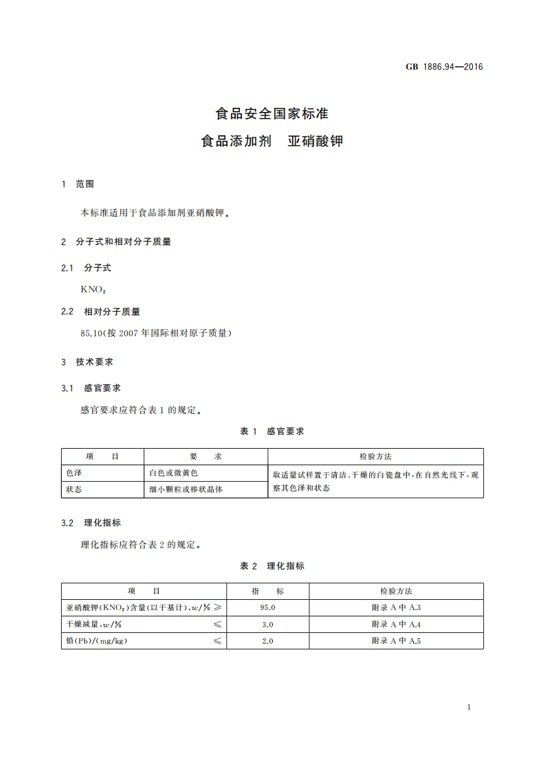 GB1886.94-2016食品安全国家标准食品添加剂亚硝酸钾_食品安全国家标准食品添加剂亚硝酸钾348072@abc10天前发布关注私信0.21MB5页021GB1886.94-2016食品安全国家标准食品添加剂亚硝酸钾_食品安全国家标准食品添加剂亚硝酸钾此内容为付费资源,请付费后查看¥19¥23黄金会员免费钻石会员免费立即购买您当前未登录!建议登陆后购买,可保存购买订单付费资源 第1页 / 共5页 第2页 / 共5页 第3页 / 共5页 试读已结束,还剩2页,您可下载完整版后进行离线阅读 THE END标准规范餐饮美食 文本预览 B中华人民共和国国家标准GB1886.94-2016食品安全国家标准食品添加剂亚硝酸钾2016-08-31发布2017-01-01实施中华人民共和国国家卫生和计划生育委员会发布 查看更多 收起部分 喜欢就支持一下吧收藏