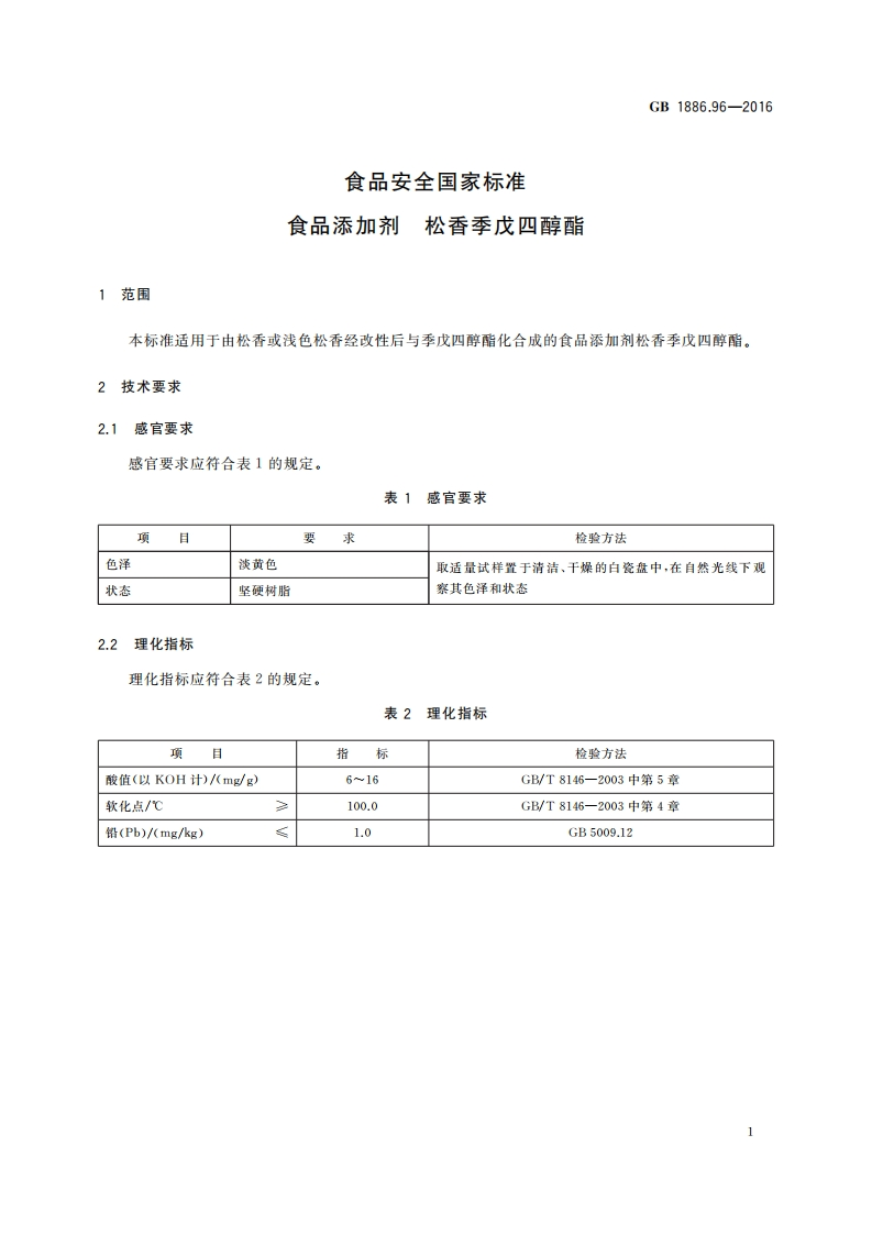 GB1886.96-2016食品安全国家标准松香季戊四醇酯食品添加剂_食品安全国家标准食品添加剂松香季戊四醇酯348072@abc10天前发布关注私信0.18MB3页022GB1886.96-2016食品安全国家标准松香季戊四醇酯食品添加剂_食品安全国家标准食品添加剂松香季戊四醇酯此内容为付费资源,请付费后查看¥19¥23黄金会员免费钻石会员免费立即购买您当前未登录!建议登陆后购买,可保存购买订单付费资源 第1页 / 共3页 第2页 / 共3页 第3页 / 共3页 已完成全部阅读,共3页 THE END标准规范餐饮美食 文本预览 GB中华人民共和国国家标准GB1886.96-2016食品安全国家标准食品添加剂松香季戊四醇酯2016-08-31发布2017-01-01实施中华人民共和国国家卫生和计划生育委员会发布 查看更多 收起部分 喜欢就支持一下吧收藏