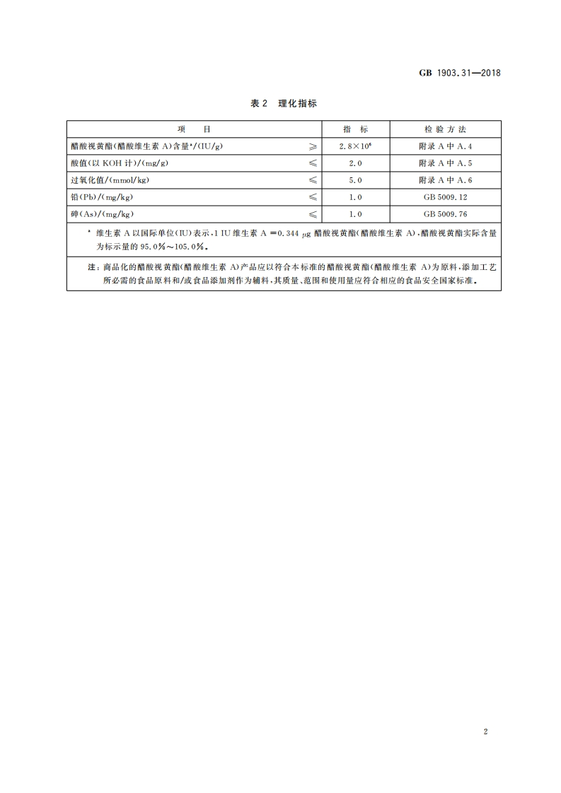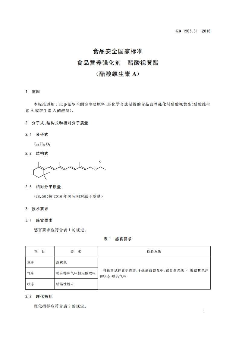 GB1903.31-2018食品安全国家标准醋酸视黄酯食品营养强化剂醋酸维生素A)_食品安全国家标准醋酸视黄酯食品营养强化剂醋酸维生素A)348072@abc10天前发布关注私信0.62MB10页032GB1903.31-2018食品安全国家标准醋酸视黄酯食品营养强化剂醋酸维生素A)_食品安全国家标准醋酸视黄酯食品营养强化剂醋酸维生素A)此内容为付费资源,请付费后查看¥19¥23黄金会员免费钻石会员免费立即购买您当前未登录!建议登陆后购买,可保存购买订单付费资源 第1页 / 共10页 第2页 / 共10页 第3页 / 共10页 试读已结束,还剩7页,您可下载完整版后进行离线阅读 THE END标准规范餐饮美食 文本预览 GB中华人民共和国国家标准GB1903.31-2018食品安全国家标准食品营养强化剂醋酸视黄酯(醋酸维生素A)2018-06-21发布2018-12-21实施中华人民共和国国家卫生健康委员会国家市场监督管理总局发布 查看更多 收起部分 喜欢就支持一下吧收藏