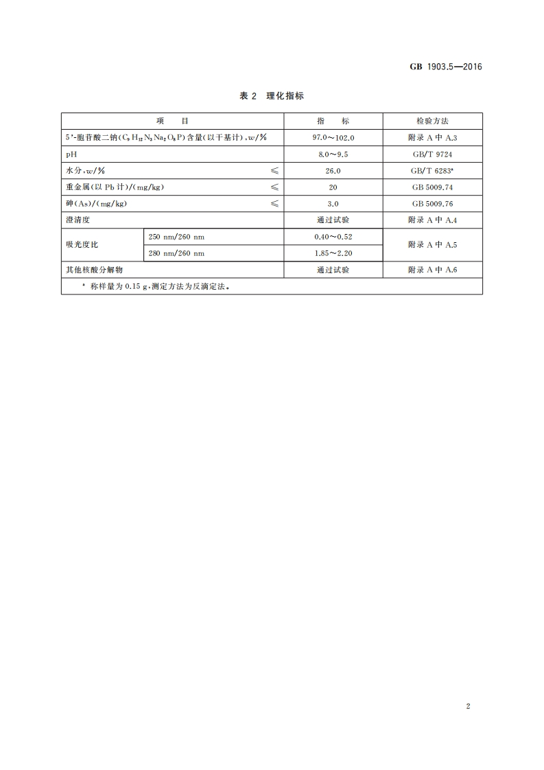 GB1903.5-2016食品安全国家标准食品营养强化剂5’-胞苷酸二钠_食品安全国家标准食品营养强化剂5’-胞苷酸二钠348072@abc10天前发布关注私信0.23MB6页031GB1903.5-2016食品安全国家标准食品营养强化剂5’-胞苷酸二钠_食品安全国家标准食品营养强化剂5’-胞苷酸二钠此内容为付费资源,请付费后查看¥19¥23黄金会员免费钻石会员免费立即购买您当前未登录!建议登陆后购买,可保存购买订单付费资源 第1页 / 共6页 第2页 / 共6页 第3页 / 共6页 试读已结束,还剩3页,您可下载完整版后进行离线阅读 THE END标准规范餐饮美食 文本预览 中华人民共和国国家标准GB1903.5-2016食品安全国家标准食品营养强化剂5’-胞苷酸二钠2016-08-31发布2017-01-01实施中华人民共和国国家卫生和计划生育委员会发布 查看更多 收起部分 喜欢就支持一下吧收藏