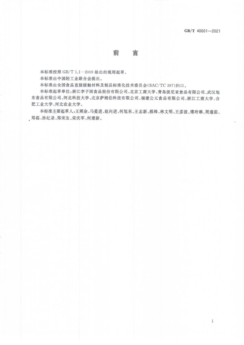 GBT40001-2021食品包装评价技术通则348072@abc4个月前发布关注私信1.03MB8页027GBT40001-2021食品包装评价技术通则此内容为付费资源,请付费后查看¥13¥25黄金会员免费钻石会员免费立即购买您当前未登录!建议登陆后购买,可保存购买订单付费资源 第1页 / 共8页 第2页 / 共8页 试读已结束,还剩6页,您可下载完整版后进行离线阅读 THE END标准规范 文本预览 ICS67.250X02GB中华人民共和国国家标准GB/T40001一2021食品包装评价技术通则General technical rules of evaluation for food packaging2021-04-30发布2021-11-01实施国家市场监督管理总局国家标准化管理委员会发布@ 查看更多 收起部分 喜欢就支持一下吧收藏