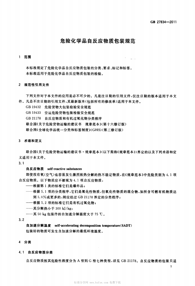 GB27834–2011危险化学品自反应物质包装规范Safetycodeforpackagingofhazardouschemicalsofself-reactivesubstances348072@abc7天前发布关注私信0.35MB11页034GB27834–2011危险化学品自反应物质包装规范Safetycodeforpackagingofhazardouschemicalsofself-reactivesubstances此内容为付费资源,请付费后查看¥19¥23黄金会员免费钻石会员免费立即购买您当前未登录!建议登陆后购买,可保存购买订单付费资源 第1页 / 共11页 第2页 / 共11页 第3页 / 共11页 试读已结束,还剩8页,您可下载完整版后进行离线阅读 THE END标准规范餐饮美食 文本预览 ICS13.300A80中华人民共和国国家标准GB27834一2011危险化学品自反应物质包装规范Safety code for packaging of hazardous chemicals of self-reactive substances2011-12-30发布2012-08-01实施中华人民共和国国家质量监督检验检疫总局中国国家标准化管理委员会发布 查看更多 收起部分 喜欢就支持一下吧收藏