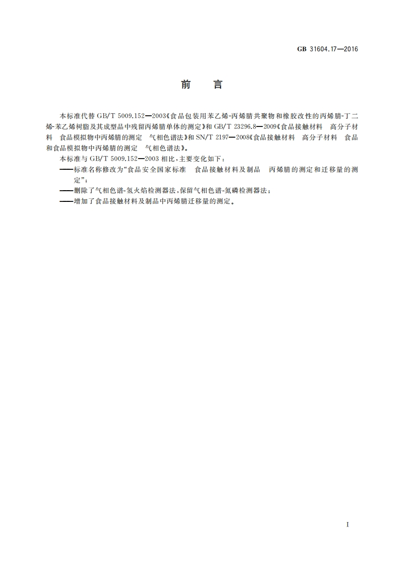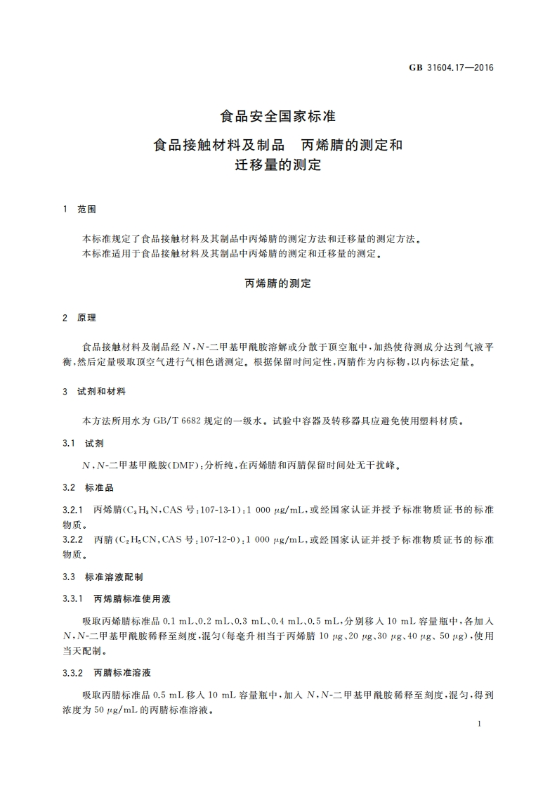 GB31604.17-2016食品安全国家标准品接触材料及制品丙烯腈的测定和迁移量的测定_食品安全国家标准食品接触材料及制品,丙烯腈的测定和迁移量的测定348072@abc8天前发布关注私信0.66MB10页037GB31604.17-2016食品安全国家标准品接触材料及制品丙烯腈的测定和迁移量的测定_食品安全国家标准食品接触材料及制品,丙烯腈的测定和迁移量的测定此内容为付费资源,请付费后查看¥19¥23黄金会员免费钻石会员免费立即购买您当前未登录!建议登陆后购买,可保存购买订单付费资源 第1页 / 共10页 第2页 / 共10页 第3页 / 共10页 试读已结束,还剩7页,您可下载完整版后进行离线阅读 THE END标准规范餐饮美食 文本预览 GB中华人民共和国国家标准GB31604.17一2016食品安全国家标准食品接触材料及制品丙烯腈的测定和迁移量的测定2016-10-19发布2017-04-19实施中华人民共和国国家卫生和计划生育委员会发布 查看更多 收起部分 喜欢就支持一下吧收藏