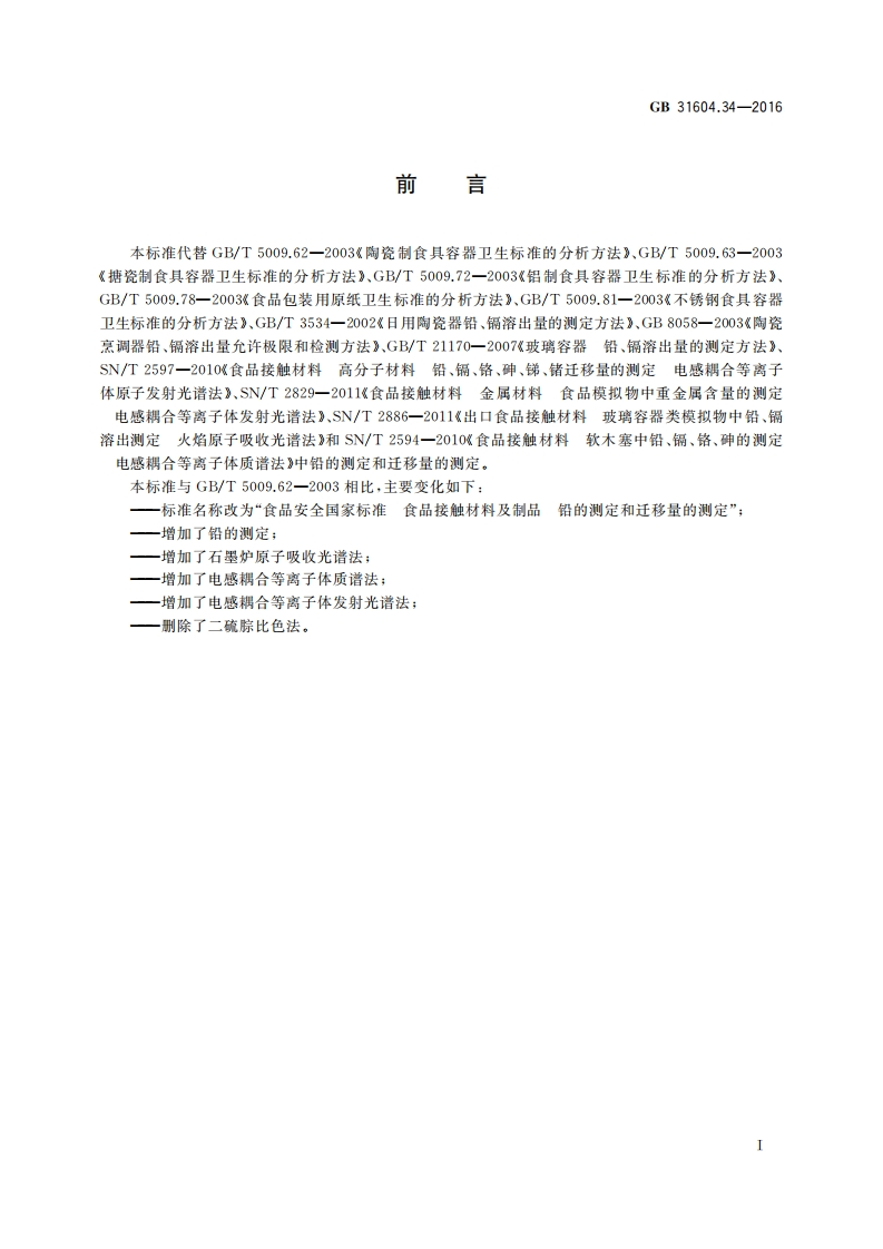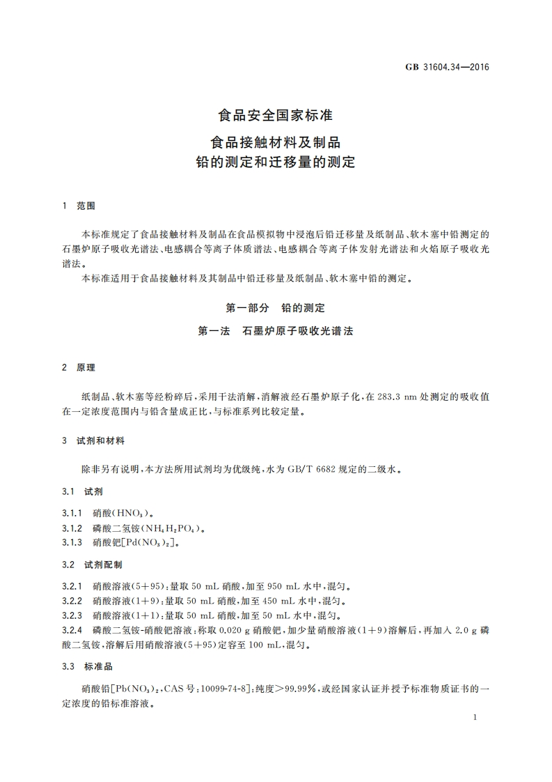 GB31604.34-2016食品安全国家标准食品接触材料及制品铅的测定和迁移量的测定_食品安全国家标准食品接触材料及制品铅的测定和迁移量的测定348072@abc6天前发布关注私信0.63MB12页022GB31604.34-2016食品安全国家标准食品接触材料及制品铅的测定和迁移量的测定_食品安全国家标准食品接触材料及制品铅的测定和迁移量的测定此内容为付费资源,请付费后查看¥19¥23黄金会员免费钻石会员免费立即购买您当前未登录!建议登陆后购买,可保存购买订单付费资源 第1页 / 共12页 第2页 / 共12页 第3页 / 共12页 试读已结束,还剩9页,您可下载完整版后进行离线阅读 THE END标准规范餐饮美食 文本预览 GB中华人民共和国国家标准GB31604.34一2016食品安全国家标准食品接触材料及制品铅的测定和迁移量的测定2016-10-19发布2017-04-19实施中华人民共和国国家卫生和计划生育委员会发布 查看更多 收起部分 喜欢就支持一下吧收藏