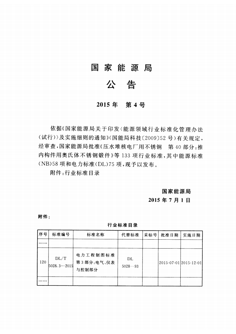 ICS27.100P60备案号:J2059一2015OL中华人民共和国电力行业标准PDL/T5028.3一2015代替DL5028一93电力工程制图标准第3部分:电气、仪表与控制部分Standard for drawing of electric power engineeringPart 3:electric,instrumentation and control2015-07-01发布2015-12-01实施国家能源局发布
