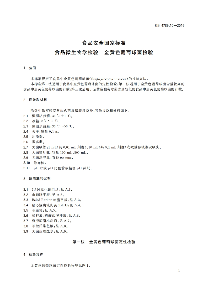 GB4789.10-2016食品安全国家标准金黄色葡萄球菌检验品微生物学检验_食品安全国家标准品微生物学检验金黄色葡萄球菌检验348072@abc30天前发布关注私信0.47MB17页032GB4789.10-2016食品安全国家标准金黄色葡萄球菌检验品微生物学检验_食品安全国家标准品微生物学检验金黄色葡萄球菌检验此内容为付费资源,请付费后查看¥19¥23黄金会员免费钻石会员免费立即购买您当前未登录!建议登陆后购买,可保存购买订单付费资源 第1页 / 共17页 第2页 / 共17页 第3页 / 共17页 试读已结束,还剩14页,您可下载完整版后进行离线阅读 THE END标准规范餐饮美食 文本预览 B中华人民共和国国家标准GB4789.10-2016食品安全国家标准食品微生物学检验金黄色葡萄球菌检验2016-12-23发布2017-06-23实施中华人民共和国国家卫生和计划生育委员会国家食品药品监督管理总局发布 查看更多 收起部分 喜欢就支持一下吧收藏