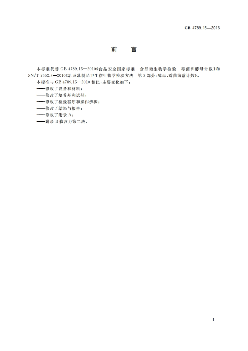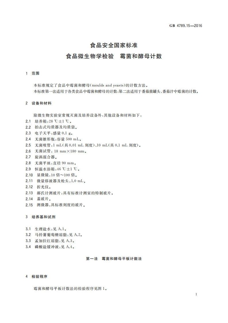 GB4789.15-2016食品安全国家标准食品微生物学检验霉菌和酵母计数_食品安全国家标准食品微生物学检验霉菌和酵母计数348072@abc30天前发布关注私信0.46MB8页044GB4789.15-2016食品安全国家标准食品微生物学检验霉菌和酵母计数_食品安全国家标准食品微生物学检验霉菌和酵母计数此内容为付费资源,请付费后查看¥19¥23黄金会员免费钻石会员免费立即购买您当前未登录!建议登陆后购买,可保存购买订单付费资源 第1页 / 共8页 第2页 / 共8页 第3页 / 共8页 试读已结束,还剩5页,您可下载完整版后进行离线阅读 THE END标准规范餐饮美食 文本预览 GB中华人民共和国国家标准GB4789.15-2016食品安全国家标准食品微生物学检验霉菌和酵母计数2016-10-19发布2017-04-19实施中华人民共和国国家卫生和计划生育委员会发布 查看更多 收起部分 喜欢就支持一下吧收藏