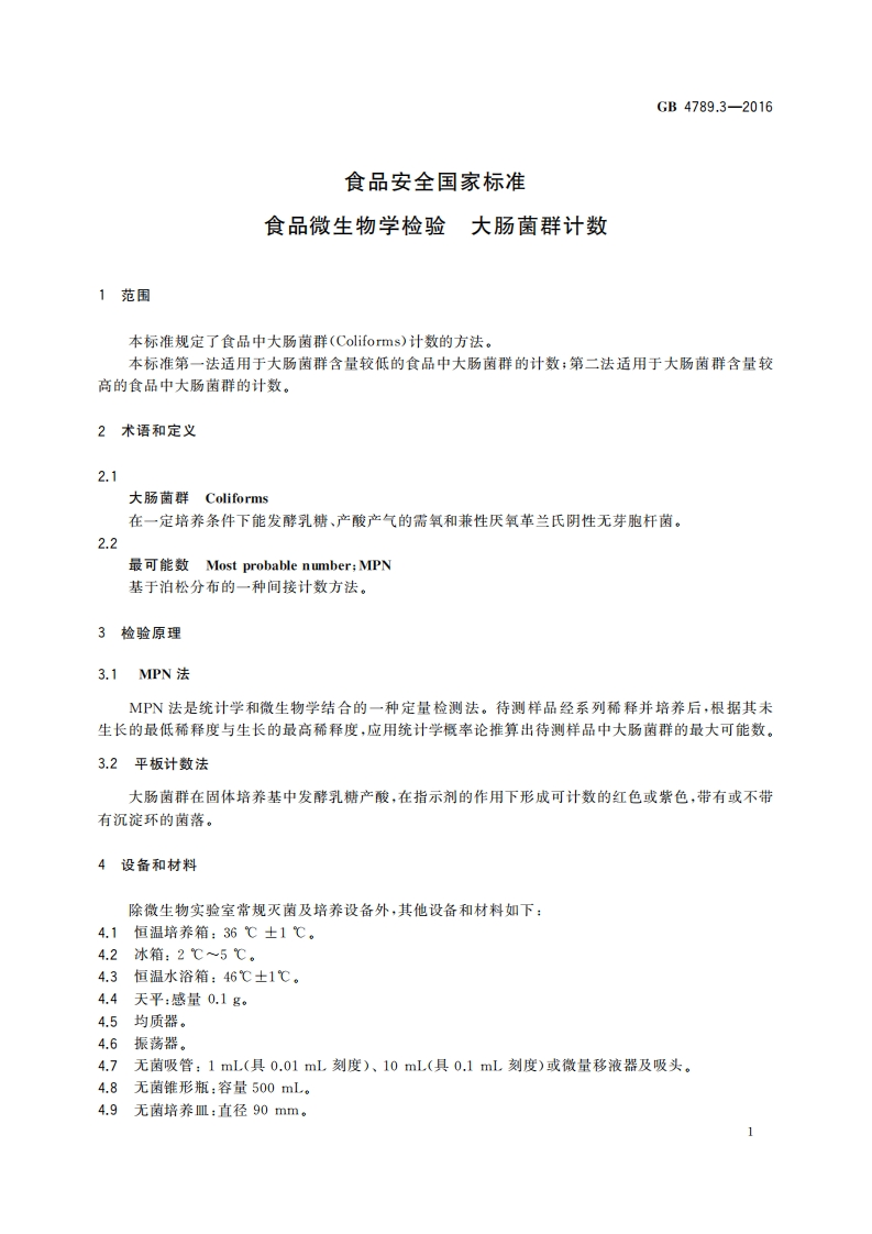 GB4789.3-2016食品安全国家标准大肠菌群计数食品微生物学检验_食品安全国家标准大肠菌群计数食品微生物学检验348072@abc30天前发布关注私信0.34MB11页039GB4789.3-2016食品安全国家标准大肠菌群计数食品微生物学检验_食品安全国家标准大肠菌群计数食品微生物学检验此内容为付费资源,请付费后查看¥19¥23黄金会员免费钻石会员免费立即购买您当前未登录!建议登陆后购买,可保存购买订单付费资源 第1页 / 共11页 第2页 / 共11页 第3页 / 共11页 试读已结束,还剩8页,您可下载完整版后进行离线阅读 THE END标准规范餐饮美食 文本预览 B中华人民共和国国家标准GB4789.3-2016食品安全国家标准食品微生物学检验大肠菌群计数2016-12-23发布2017-06-23实施中华人民共和国国家卫生和计划生育委员会国家食品药品监督管理总局发布 查看更多 收起部分 喜欢就支持一下吧收藏
