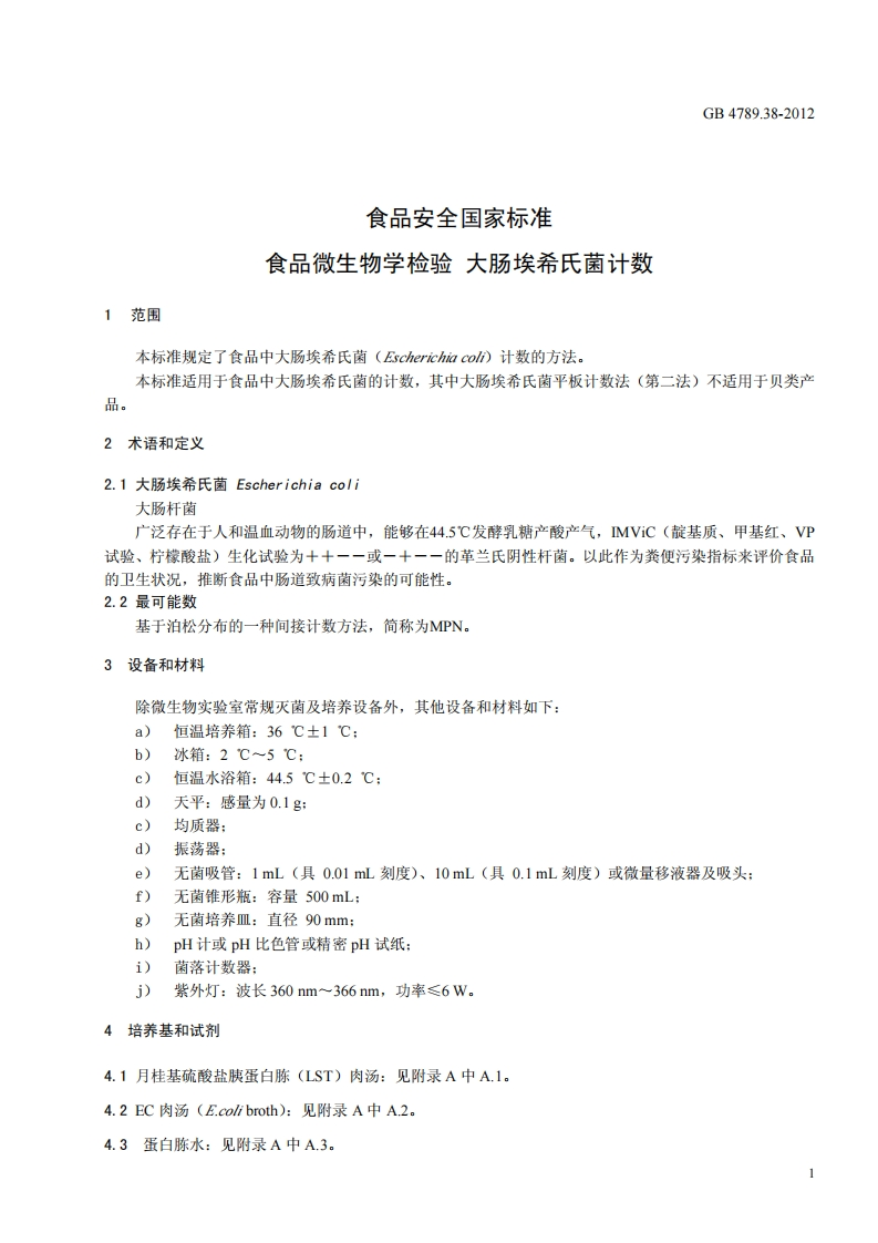GB4789.38-201食品安全国家标准食品微生物学检验大肠埃希氏菌计数_食品安全国家标准食品微生物学检验大肠埃希氏菌计数348072@abc30天前发布关注私信0.23MB14页026GB4789.38-201食品安全国家标准食品微生物学检验大肠埃希氏菌计数_食品安全国家标准食品微生物学检验大肠埃希氏菌计数此内容为付费资源,请付费后查看¥19¥23黄金会员免费钻石会员免费立即购买您当前未登录!建议登陆后购买,可保存购买订单付费资源 第1页 / 共14页 第2页 / 共14页 第3页 / 共14页 试读已结束,还剩11页,您可下载完整版后进行离线阅读 THE END标准规范餐饮美食 文本预览 中华人民共和国国家标准GB4789.38-2012食品安全国家标准食品微生物学检验大肠埃希氏菌计数2012-05-17发布2012-07-17实施中华人民共和国卫生部发布 查看更多 收起部分 喜欢就支持一下吧收藏