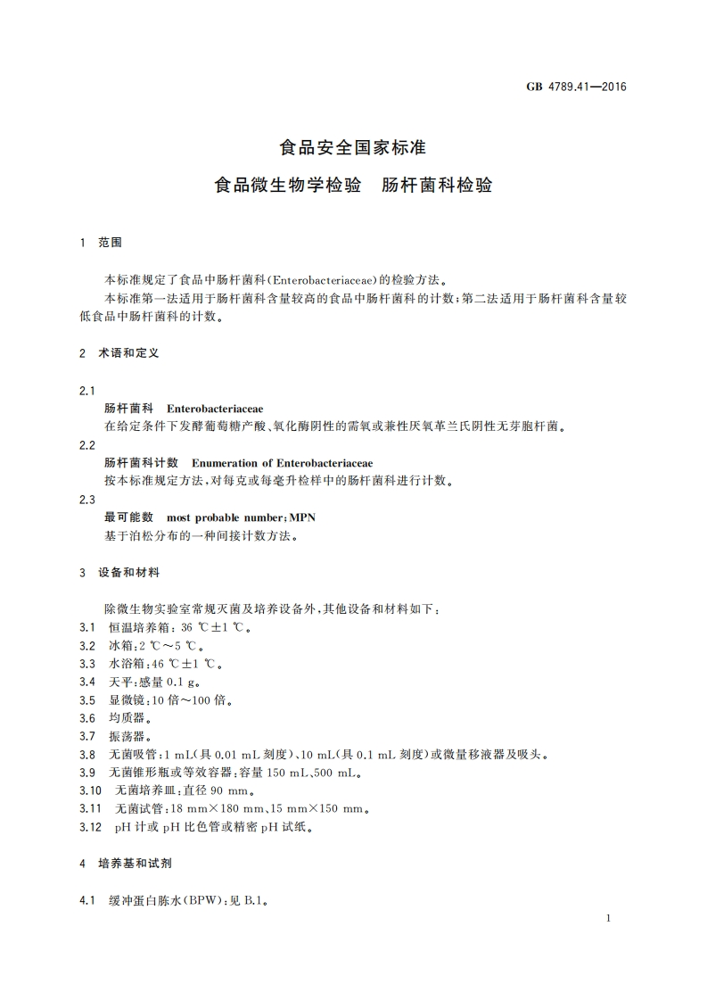 GB4789.41-2016食品安全国家标准肠杆菌科检验食品微生物学检验_食品安全国家标准食品微生物学检验肠杆菌科检验348072@abc29天前发布关注私信0.44MB14页028GB4789.41-2016食品安全国家标准肠杆菌科检验食品微生物学检验_食品安全国家标准食品微生物学检验肠杆菌科检验此内容为付费资源,请付费后查看¥19¥23黄金会员免费钻石会员免费立即购买您当前未登录!建议登陆后购买,可保存购买订单付费资源 第1页 / 共14页 第2页 / 共14页 第3页 / 共14页 试读已结束,还剩11页,您可下载完整版后进行离线阅读 THE END标准规范餐饮美食 文本预览 B中华人民共和国国家标准GB4789.41-2016食品安全国家标准食品微生物学检验肠杆菌科检验2016-08-31发布2017-03-01实施中华人民共和国国家卫生和计划生育委员会发布 查看更多 收起部分 喜欢就支持一下吧收藏