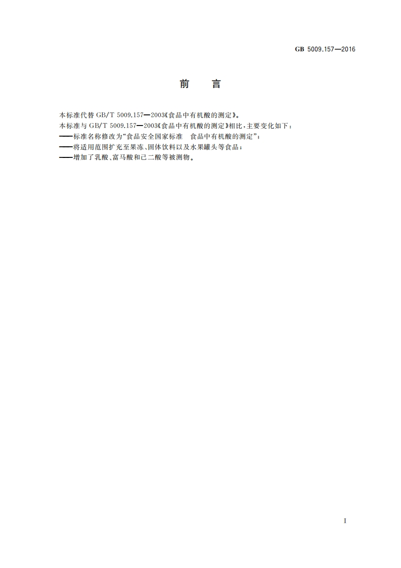 GB5009.157-2016食品安全国家标准食品中有机酸的测定_食品安全国家标准食品中有机酸的测定348072@abc30天前发布关注私信0.31MB8页038GB5009.157-2016食品安全国家标准食品中有机酸的测定_食品安全国家标准食品中有机酸的测定此内容为付费资源,请付费后查看¥19¥23黄金会员免费钻石会员免费立即购买您当前未登录!建议登陆后购买,可保存购买订单付费资源 第1页 / 共8页 第2页 / 共8页 第3页 / 共8页 试读已结束,还剩5页,您可下载完整版后进行离线阅读 THE END标准规范餐饮美食 文本预览 GB中华人民共和国国家标准GB5009.157-2016食品安全国家标准食品中有机酸的测定2016-08-31发布2017-03-01实施中华人民共和国国家卫生和计划生育委员会发布 查看更多 收起部分 喜欢就支持一下吧收藏