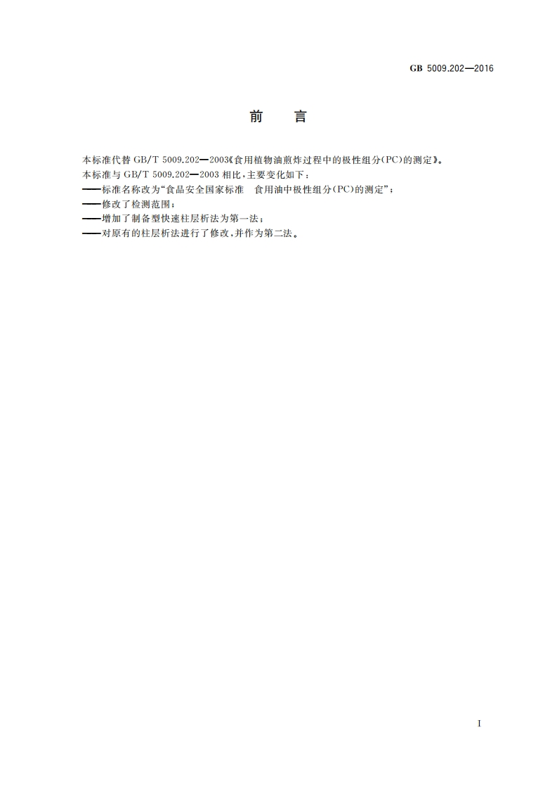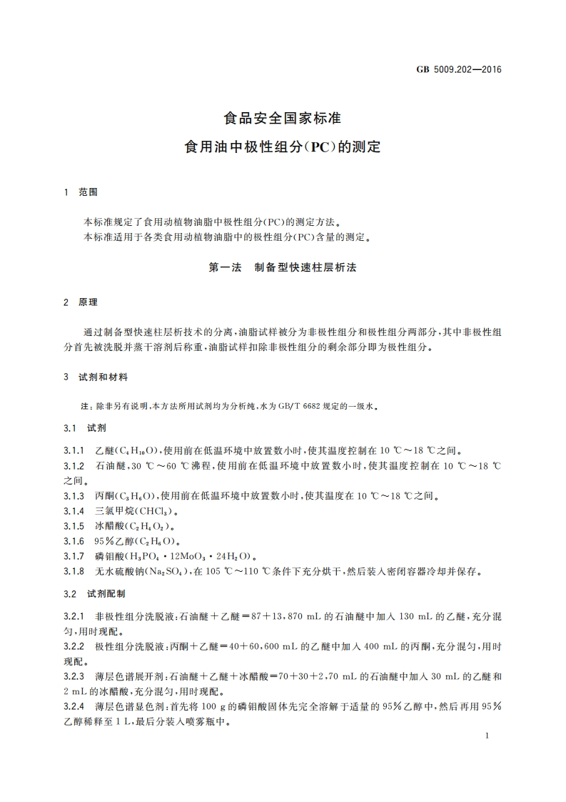 GB5009.202-2016食品安全国家标准食用油中极性组分(PC)的测定_食品安全国家标准食用油中极性组分(PC)的测定348072@abc29天前发布关注私信1.66MB12页037GB5009.202-2016食品安全国家标准食用油中极性组分(PC)的测定_食品安全国家标准食用油中极性组分(PC)的测定此内容为付费资源,请付费后查看¥19¥23黄金会员免费钻石会员免费立即购买您当前未登录!建议登陆后购买,可保存购买订单付费资源 第1页 / 共12页 第2页 / 共12页 第3页 / 共12页 试读已结束,还剩9页,您可下载完整版后进行离线阅读 THE END标准规范餐饮美食 文本预览 GB中华人民共和国国家标准GB5009.202一2016食品安全国家标准食用油中极性组分(PC)的测定2016-08-31发布2017-03-01实施中华人民共和国国家卫生和计划生育委员会发布 查看更多 收起部分 喜欢就支持一下吧收藏
