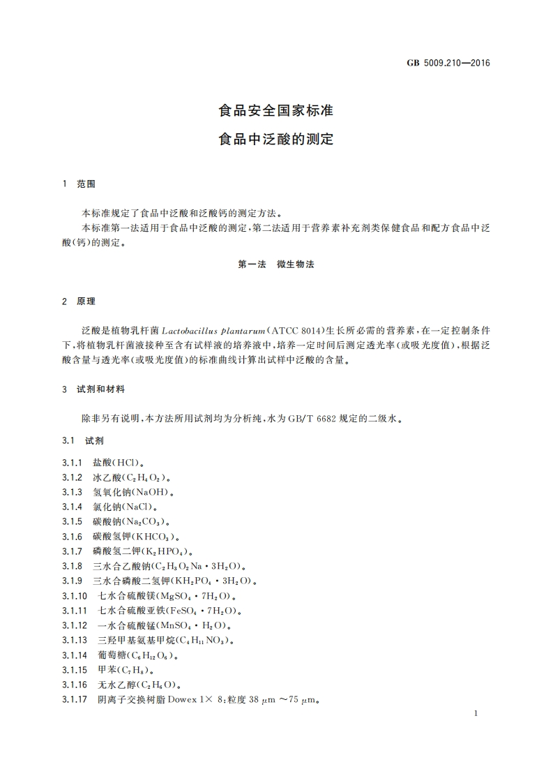 GB5009.210-2016食品安全国家标准食品中泛酸的测定_食品安全国家标准食品中泛酸的测定348072@abc29天前发布关注私信0.36MB15页023GB5009.210-2016食品安全国家标准食品中泛酸的测定_食品安全国家标准食品中泛酸的测定此内容为付费资源,请付费后查看¥19¥23黄金会员免费钻石会员免费立即购买您当前未登录!建议登陆后购买,可保存购买订单付费资源 第1页 / 共15页 第2页 / 共15页 第3页 / 共15页 试读已结束,还剩12页,您可下载完整版后进行离线阅读 THE END标准规范餐饮美食 文本预览 GB中华人民共和国国家标准GB5009.210-2016食品安全国家标准食品中泛酸的测定2016-08-31发布2017-03-01实施中华人民共和国国家卫生和计划生育委员会发布 查看更多 收起部分 喜欢就支持一下吧收藏