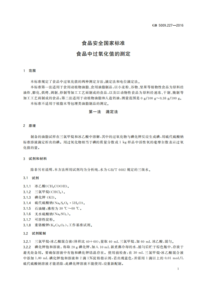 GB5009.227-2016食品安全国家标准食品中过氧化值的测定_食品安全国家标准食品中过氧化值的测定348072@abc29天前发布关注私信0.27MB8页020GB5009.227-2016食品安全国家标准食品中过氧化值的测定_食品安全国家标准食品中过氧化值的测定此内容为付费资源,请付费后查看¥19¥23黄金会员免费钻石会员免费立即购买您当前未登录!建议登陆后购买,可保存购买订单付费资源 第1页 / 共8页 第2页 / 共8页 第3页 / 共8页 试读已结束,还剩5页,您可下载完整版后进行离线阅读 THE END标准规范餐饮美食 文本预览 GB中华人民共和国国家标准GB5009.227-2016食品安全国家标准食品中过氧化值的测定2016-08-31发布2017-03-01实施中华人民共和国国家卫生和计划生育委员会发布 查看更多 收起部分 喜欢就支持一下吧收藏