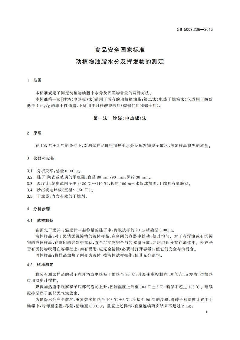 GB5009.236-2016食品安全国家标准动植物油脂水分及挥发物的测定_食品安全国家标准动植物油脂水分及挥发物的测定348072@abc4天前发布关注私信0.20MB5页044GB5009.236-2016食品安全国家标准动植物油脂水分及挥发物的测定_食品安全国家标准动植物油脂水分及挥发物的测定此内容为付费资源,请付费后查看¥19¥23黄金会员免费钻石会员免费立即购买您当前未登录!建议登陆后购买,可保存购买订单付费资源 第1页 / 共5页 第2页 / 共5页 第3页 / 共5页 试读已结束,还剩2页,您可下载完整版后进行离线阅读 THE END标准规范餐饮美食 文本预览 中华人民共和国国家标准GB5009.236-2016食品安全国家标准动植物油脂水分及挥发物的测定2016-08-31发布2017-03-01实施中华人民共和国国家卫生和计划生育委员会发布 查看更多 收起部分 喜欢就支持一下吧收藏