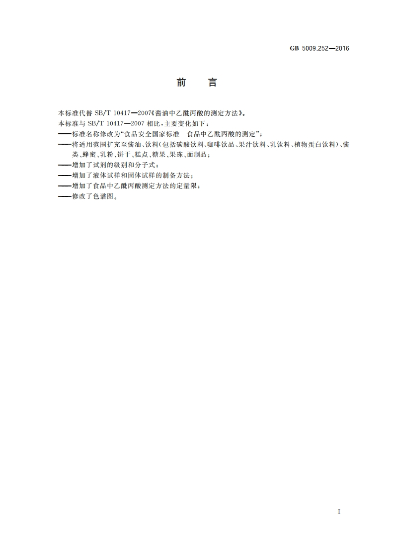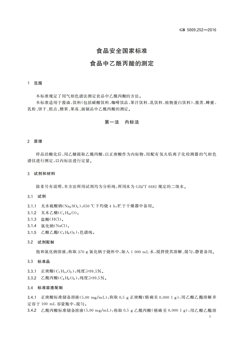 GB5009.252-2016食品安全国家标准食品中乙酰丙酸的测定_食品安全国家标准食品中乙酰丙酸的测定348072@abc8天前发布关注私信0.37MB9页032GB5009.252-2016食品安全国家标准食品中乙酰丙酸的测定_食品安全国家标准食品中乙酰丙酸的测定此内容为付费资源,请付费后查看¥19¥23黄金会员免费钻石会员免费立即购买您当前未登录!建议登陆后购买,可保存购买订单付费资源 第1页 / 共9页 第2页 / 共9页 第3页 / 共9页 试读已结束,还剩6页,您可下载完整版后进行离线阅读 THE END标准规范餐饮美食 文本预览 GB中华人民共和国国家标准GB5009.252-2016食品安全国家标准食品中乙酰丙酸的测定2016-08-31发布2017-03-01实施中华人民共和国国家卫生和计划生育委员会发布 查看更多 收起部分 喜欢就支持一下吧收藏