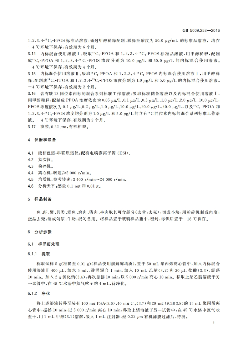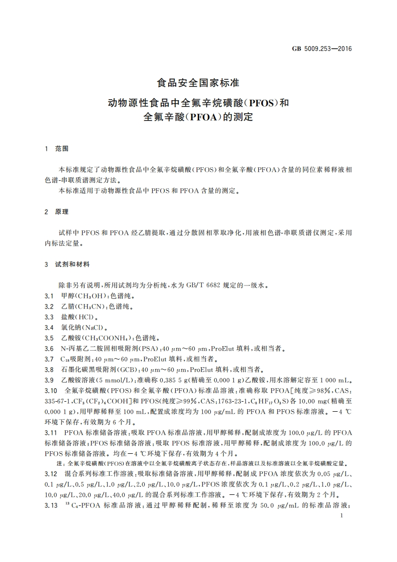 GB5009.253-2016食品安全国家标准物源性食品中全氟辛烷磺酸(PFOS)和全氟辛酸(PFOA)的测定_食品安全国家标准力物源性食品中全氟辛烷磺酸(PFOS)和全氟辛酸(PFOA)的测定348072@abc8天前发布关注私信0.46MB8页039GB5009.253-2016食品安全国家标准物源性食品中全氟辛烷磺酸(PFOS)和全氟辛酸(PFOA)的测定_食品安全国家标准力物源性食品中全氟辛烷磺酸(PFOS)和全氟辛酸(PFOA)的测定此内容为付费资源,请付费后查看¥19¥23黄金会员免费钻石会员免费立即购买您当前未登录!建议登陆后购买,可保存购买订单付费资源 第1页 / 共8页 第2页 / 共8页 第3页 / 共8页 试读已结束,还剩5页,您可下载完整版后进行离线阅读 THE END标准规范餐饮美食 文本预览 B中华人民共和国国家标准GB5009.253-2016食品安全国家标准动物源性食品中全氟辛烷磺酸(PFOS)和全氟辛酸(PFOA)的测定2016-08-31发布2017-03-01实施中华人民共和国国家卫生和计划生育委员会发布 查看更多 收起部分 喜欢就支持一下吧收藏
