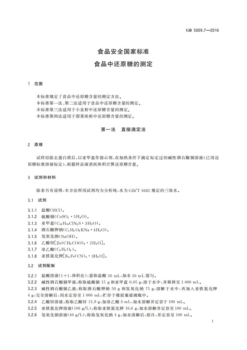 GB5009.7-2016食品安全国家标准食品中还原糖的测定_食品安全国家标准食品中还原糖的测定348072@abc9天前发布关注私信0.42MB21页049GB5009.7-2016食品安全国家标准食品中还原糖的测定_食品安全国家标准食品中还原糖的测定此内容为付费资源,请付费后查看¥19¥23黄金会员免费钻石会员免费立即购买您当前未登录!建议登陆后购买,可保存购买订单付费资源 第1页 / 共21页 第2页 / 共21页 第3页 / 共21页 试读已结束,还剩18页,您可下载完整版后进行离线阅读 THE END标准规范餐饮美食 文本预览 GB中华人民共和国国家标准GB5009.7-2016食品安全国家标准食品中还原糖的测定2016-08-31发布2017-03-01实施中华人民共和国国家卫生和计划生育委员会发布 查看更多 收起部分 喜欢就支持一下吧收藏