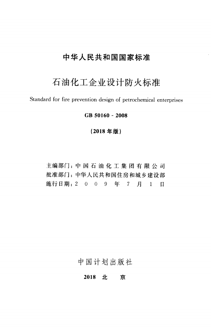 GB50160-2008石油化工企业设计防火标准dardforfirepreventiondesignofpetrochemicalenterprises(2018年版)18-12-30发布2009-07-01实施华人民共和国住房和城乡建设部家市场监督管理总局联合发布348072@abc昨天发布关注私信7.07MB216页048GB50160-2008石油化工企业设计防火标准dardforfirepreventiondesignofpetrochemicalenterprises(2018年版)18-12-30发布2009-07-01实施华人民共和国住房和城乡建设部家市场监督管理总局联合发布此内容为付费资源,请付费后查看¥19¥23黄金会员免费钻石会员免费立即购买您当前未登录!建议登陆后购买,可保存购买订单付费资源 第1页 / 共216页 第2页 / 共216页 第3页 / 共216页 试读已结束,还剩213页,您可下载完整版后进行离线阅读 THE END标准规范餐饮美食 文本预览 UDC中华人民共和国国家标准GBPGB50160-2008石油化工企业设计防火标准Standard for fire prevention design of petrochemical enterprises(2018年版)2008-12-30发布2009-07-01实施中华人民共和国住房和城乡建设部国家市场监督管理总局联合发布 查看更多 收起部分 喜欢就支持一下吧收藏