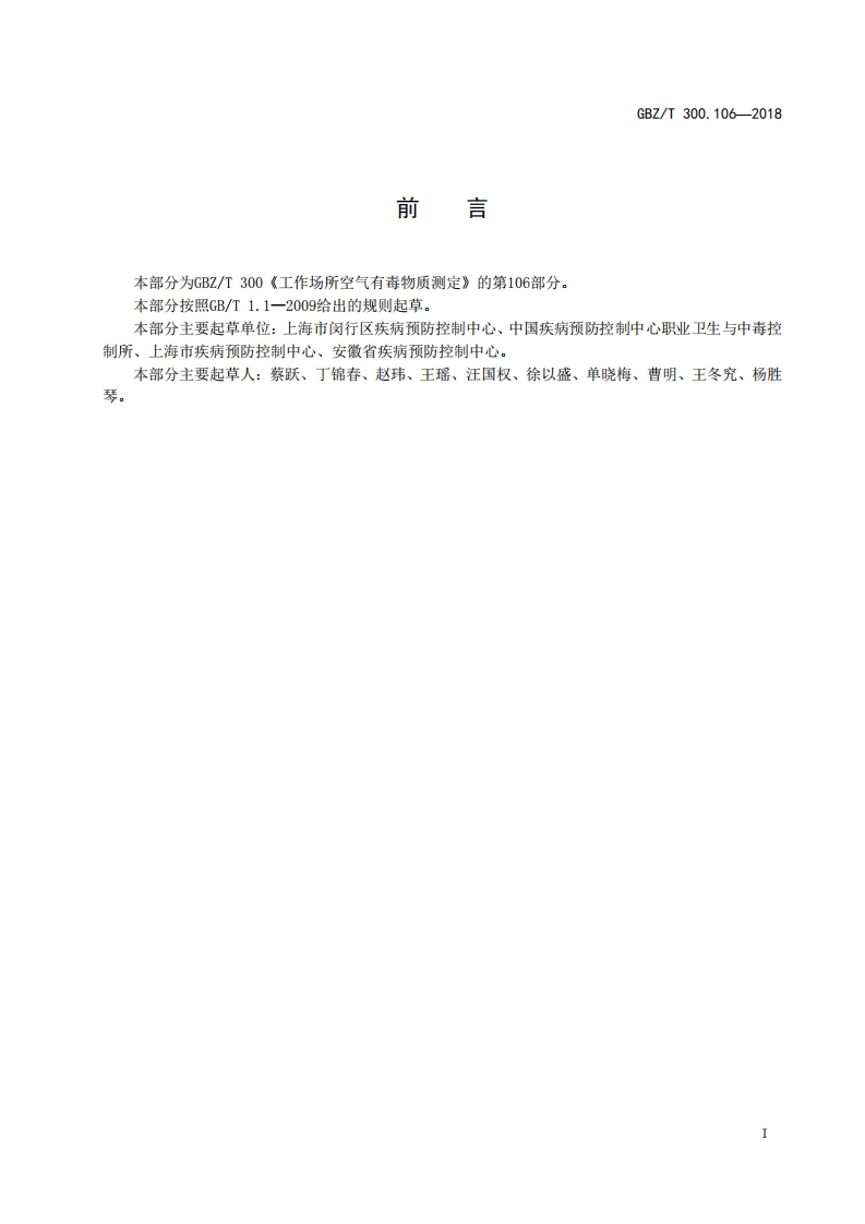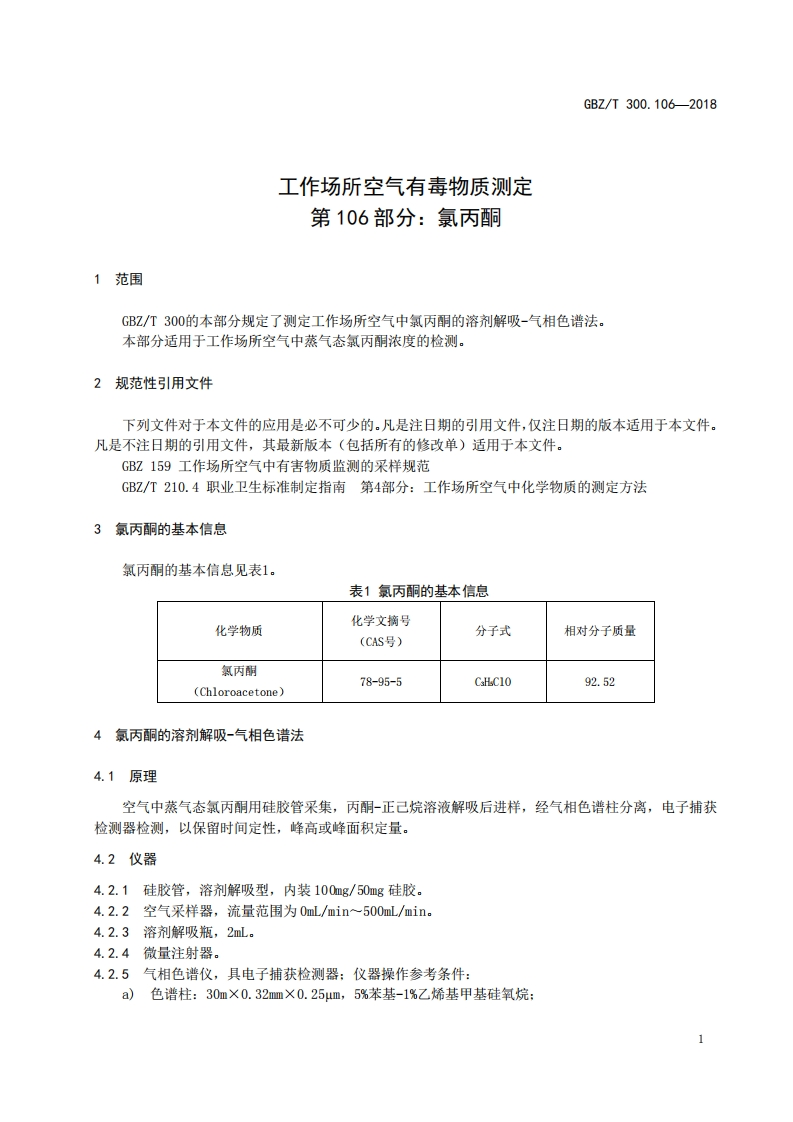 GBZ_T300.106-2018工作场所空气有毒物质测定第106部分_氯丙酮Determinationoftoxicsubstancesinworkplaceair-Part106_Chloroacetone_工作场所空气有毒物质测定第106部分_氯丙酮Determinationoftoxicsubstancesinworkplaceair-Part106_Chloroacetone348072@abc30天前发布关注私信0.34MB5页044GBZ_T300.106-2018工作场所空气有毒物质测定第106部分_氯丙酮Determinationoftoxicsubstancesinworkplaceair-Part106_Chloroacetone_工作场所空气有毒物质测定第106部分_氯丙酮Determinationoftoxicsubstancesinworkplaceair-Part106_Chloroacetone此内容为付费资源,请付费后查看¥19¥23黄金会员免费钻石会员免费立即购买您当前未登录!建议登陆后购买,可保存购买订单付费资源 第1页 / 共5页 第2页 / 共5页 第3页 / 共5页 试读已结束,还剩2页,您可下载完整版后进行离线阅读 THE END标准规范餐饮美食 文本预览 ICS13.100C52HBZ中华人民共和国国家职业卫生标准GBZ/T300.106-2018工作场所空气有毒物质测定第106部分:氯丙酮Determination of toxic substances in workplace air-Part 106:Chloroacetone2018-07-16发布2019-07-01实施中华人民共和国国家卫生健康委员会发布 查看更多 收起部分 喜欢就支持一下吧收藏