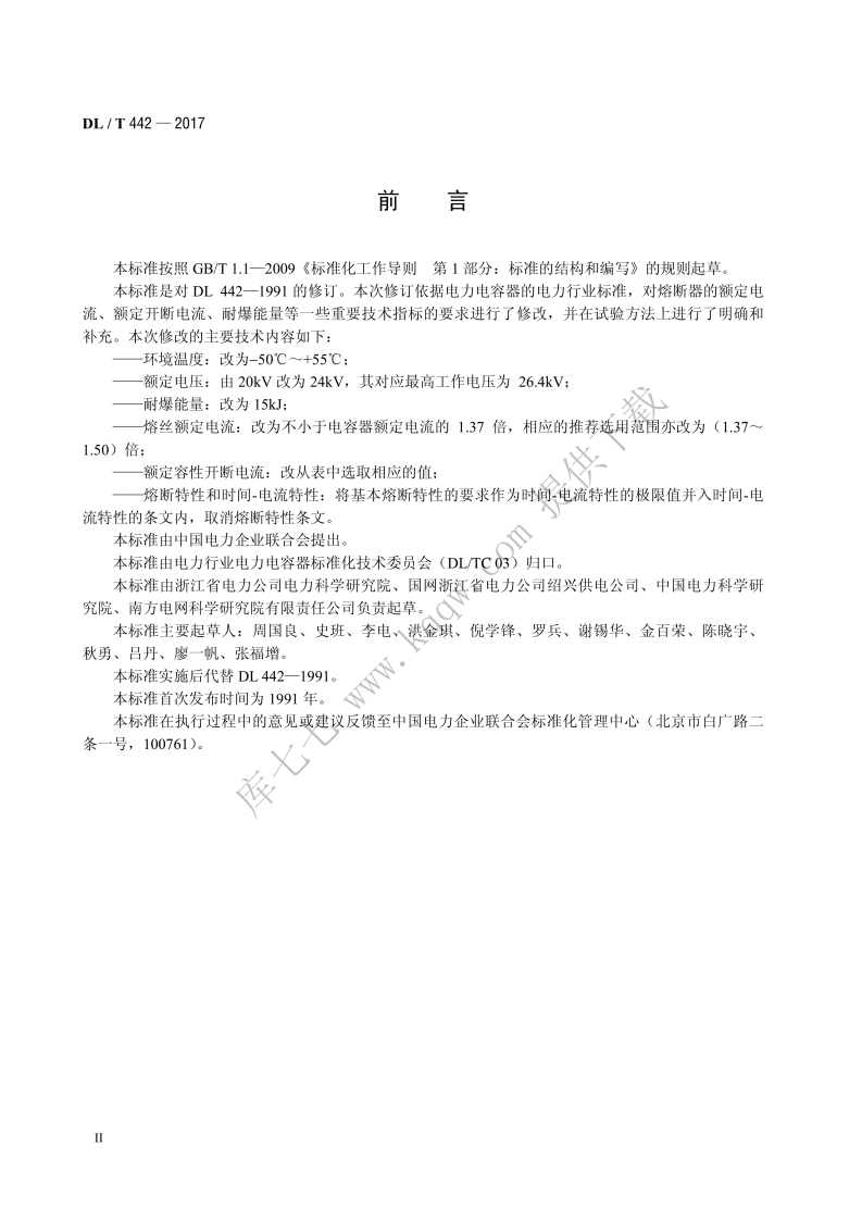 ICS31.060.01L11备案号_62391-2018D中华人民共和国电力行业标准DL_T442-2017代替DL442-1991高压并联电容器单台保护用熔断器使用技术条件348072@abc15天前发布关注私信9.07MB24页038ICS31.060.01L11备案号_62391-2018D中华人民共和国电力行业标准DL_T442-2017代替DL442-1991高压并联电容器单台保护用熔断器使用技术条件此内容为付费资源,请付费后查看¥19¥23黄金会员免费钻石会员免费立即购买您当前未登录!建议登陆后购买,可保存购买订单付费资源 第1页 / 共24页 第2页 / 共24页 第3页 / 共24页 试读已结束,还剩21页,您可下载完整版后进行离线阅读 THE END标准规范餐饮美食 文本预览 ICS31.060.01L11备案号:62391-2018D中华人民共和国电力行业标准DL/T442一2017代替DL442一1991高压并联电容器单台保护用熔断器使用技术条件Order-specification of fuse for the protection of ahigh-voltage shunt capacitor2017-12-27发布2018-06-01实施国家能源局发布 查看更多 收起部分 喜欢就支持一下吧收藏