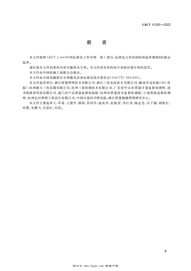 ICS31.260CCSL51GB中华人民共和国国家标准GB_T41265-2022可穿戴设备的光辐射安全要求Opticalradiationsafetyrequirementsofwearabledevices_1348072@abc14天前发布关注私信7.31MB32页043ICS31.260CCSL51GB中华人民共和国国家标准GB_T41265-2022可穿戴设备的光辐射安全要求Opticalradiationsafetyrequirementsofwearabledevices_1此内容为付费资源,请付费后查看¥19¥23黄金会员免费钻石会员免费立即购买您当前未登录!建议登陆后购买,可保存购买订单付费资源 第1页 / 共32页 第2页 / 共32页 第3页 / 共32页 试读已结束,还剩29页,您可下载完整版后进行离线阅读 THE END标准规范餐饮美食 文本预览 ICs31.260CCS L 51GB中华人民共和国国家标准GB/T41265-2022可穿戴设备的光辐射安全要求Optical radiation safety requirements of wearable devices2022-03-09发布2022-10-01实施国家市场监督管理总局发布国家标准化管理委员会 查看更多 收起部分 喜欢就支持一下吧收藏