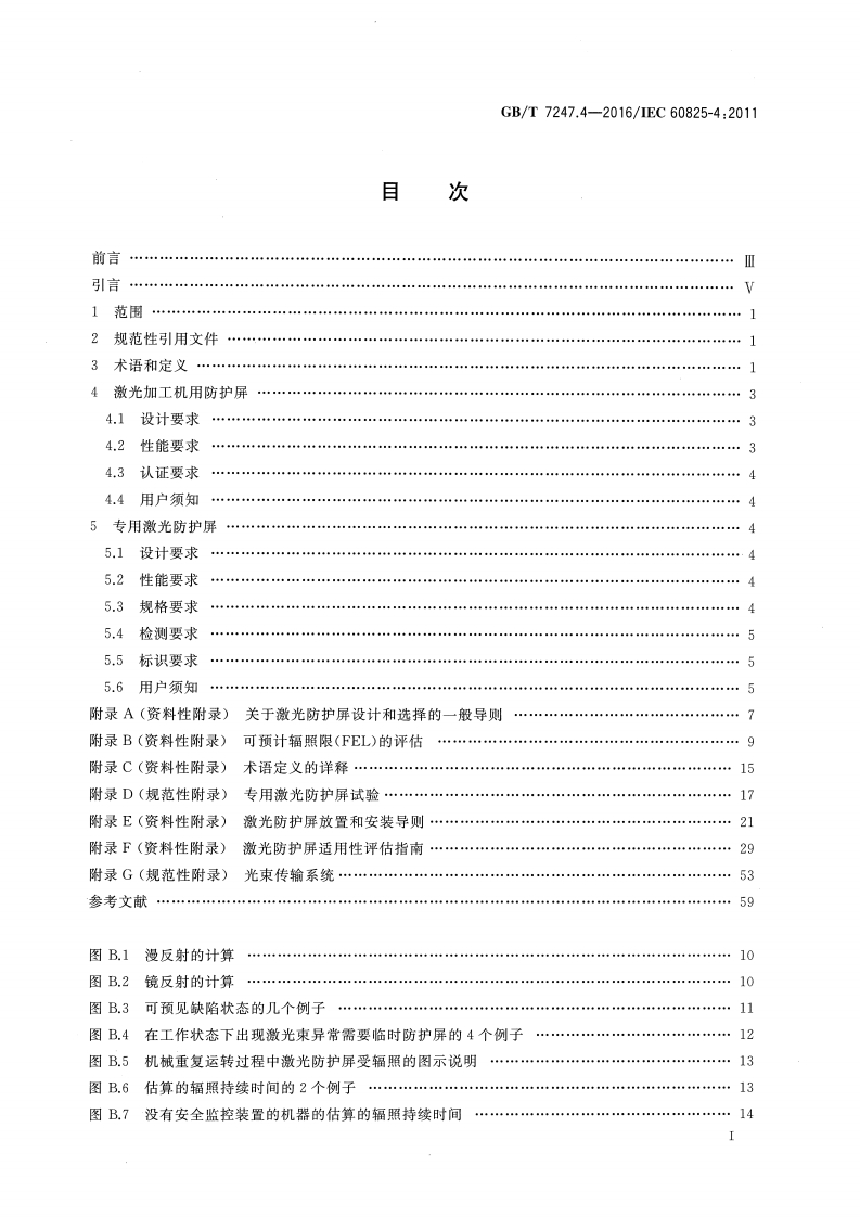 ICS31.260L51中华人民共和国国家标准GB/T7247.4-2016/IEC60825-4:2011代替GB/T18151一2008激光产品的安全第4部分:激光防护屏Safety of laser products-Part 4:Laser guards(IEC60825-4:2011,IDT)2016-08-29发布2017-03-01实施中华人民共和国国家质量监督检验检疫总局中国国家标准化管理委员会发布