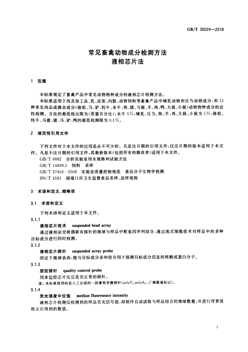 GB_T35024-201常见畜禽动物成分检测方法液相芯片法DetectionmethodofmammalsandpoultryingredientsSuspendedbeadarray_常见畜禽动物成分检测方法液相芯片法DetectionmethodofmammalsandpoultryingredientsSuspendedbeadarray348072@abc12天前发布关注私信4MB10页040GB_T35024-201常见畜禽动物成分检测方法液相芯片法DetectionmethodofmammalsandpoultryingredientsSuspendedbeadarray_常见畜禽动物成分检测方法液相芯片法DetectionmethodofmammalsandpoultryingredientsSuspendedbeadarray此内容为付费资源,请付费后查看¥19¥23黄金会员免费钻石会员免费立即购买您当前未登录!建议登陆后购买,可保存购买订单付费资源 第1页 / 共10页 第2页 / 共10页 第3页 / 共10页 试读已结束,还剩7页,您可下载完整版后进行离线阅读 THE END标准规范餐饮美食 文本预览 1CS67.120.10B40GB中华人民共和国国家标准GB/T35024-2018常见畜禽动物成分检测方法液相芯片法Detection method of mammals and poultry ingredients-Suspended bead array2018-05-14发布2018-12-01实施国家市场监督管理总局中国国家标准化管理委员会发布 查看更多 收起部分 喜欢就支持一下吧收藏