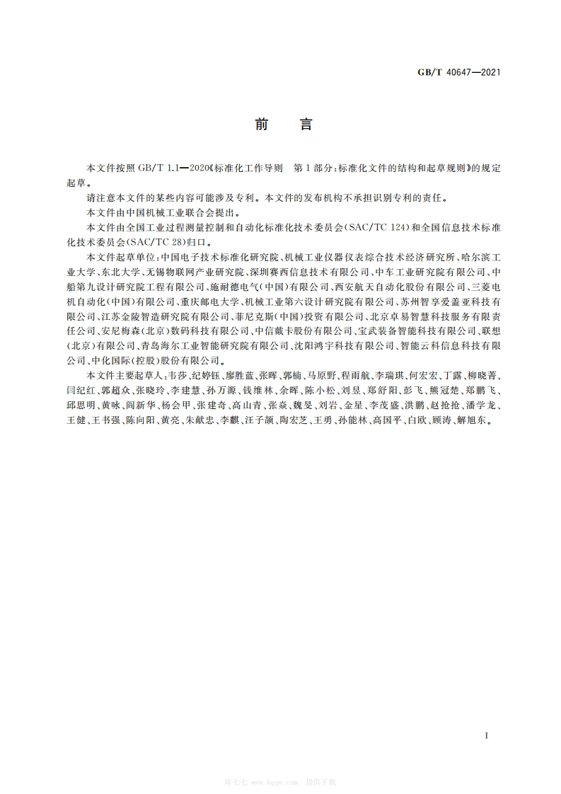 ICS35.240.50CCSL67GB中华人民共和国国家标准GB_T40647-2021智能制造系统架构Intelligentmanufacturing-Systemarchitecture348072@abc11天前发布关注私信2.83MB25页029ICS35.240.50CCSL67GB中华人民共和国国家标准GB_T40647-2021智能制造系统架构Intelligentmanufacturing-Systemarchitecture此内容为付费资源,请付费后查看¥19¥23黄金会员免费钻石会员免费立即购买您当前未登录!建议登陆后购买,可保存购买订单付费资源 第1页 / 共25页 第2页 / 共25页 第3页 / 共25页 试读已结束,还剩22页,您可下载完整版后进行离线阅读 THE END标准规范餐饮美食 文本预览 1CS35.240.50CCS L 67B中华人民共和国国家标准GB/T40647-2021智能制造系统架构Intelligent manufacturing-System architecture2021-10-11发布2022-05-01实施国家市场监督管理总局发布国家标准化管理委员会 查看更多 收起部分 喜欢就支持一下吧收藏