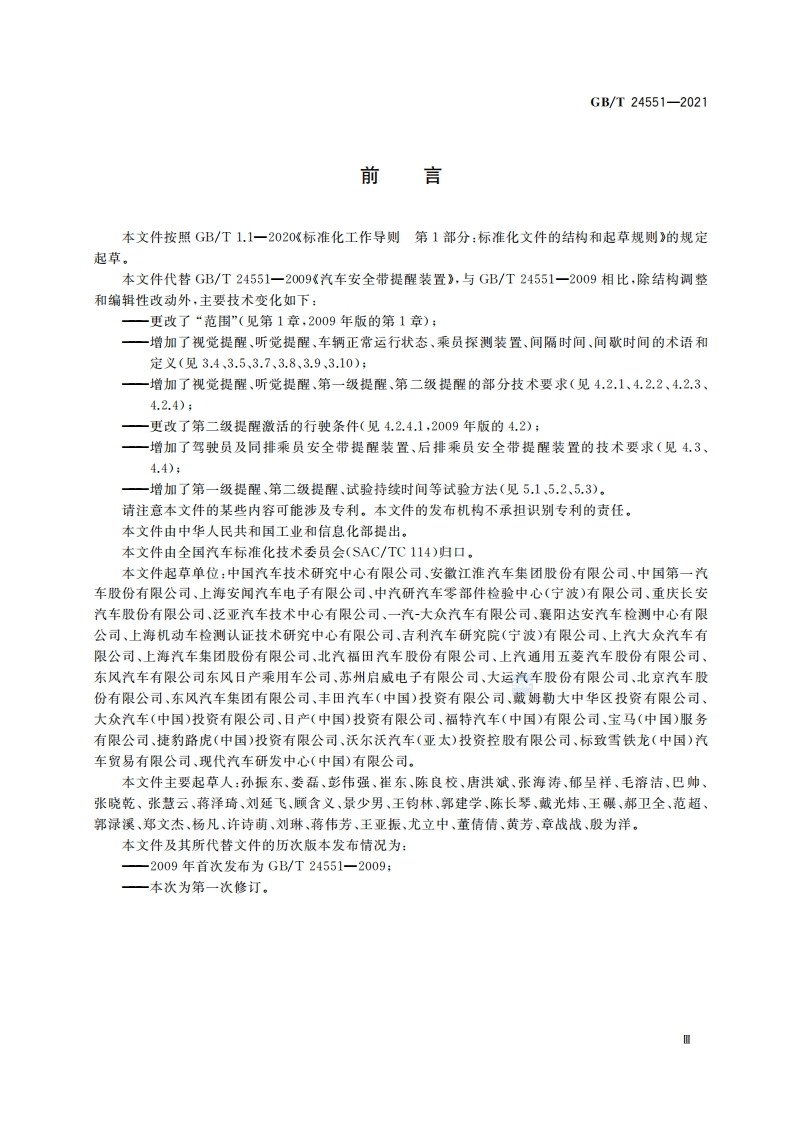 ICS43.020CCST09GB中华人民共和国国家标准GB_T24551-2021代替GB_T24551-2009汽车安全带提醒装置Safetybeltreminderformotorvehicles348072@abc9天前发布关注私信0.53MB8页020ICS43.020CCST09GB中华人民共和国国家标准GB_T24551-2021代替GB_T24551-2009汽车安全带提醒装置Safetybeltreminderformotorvehicles此内容为付费资源,请付费后查看¥19¥23黄金会员免费钻石会员免费立即购买您当前未登录!建议登陆后购买,可保存购买订单付费资源 第1页 / 共8页 第2页 / 共8页 第3页 / 共8页 试读已结束,还剩5页,您可下载完整版后进行离线阅读 THE END标准规范餐饮美食 文本预览 ICS43.020CCS T 09GB中华人民共和国国家标准GB/T24551一2021代替GB/T24551一2009汽车安全带提醒装置Safety belt reminder for motor vehicles2021-12-31发布2022-07-01实施国家市场监督管理总局发布国家标准化管理委员会 查看更多 收起部分 喜欢就支持一下吧收藏