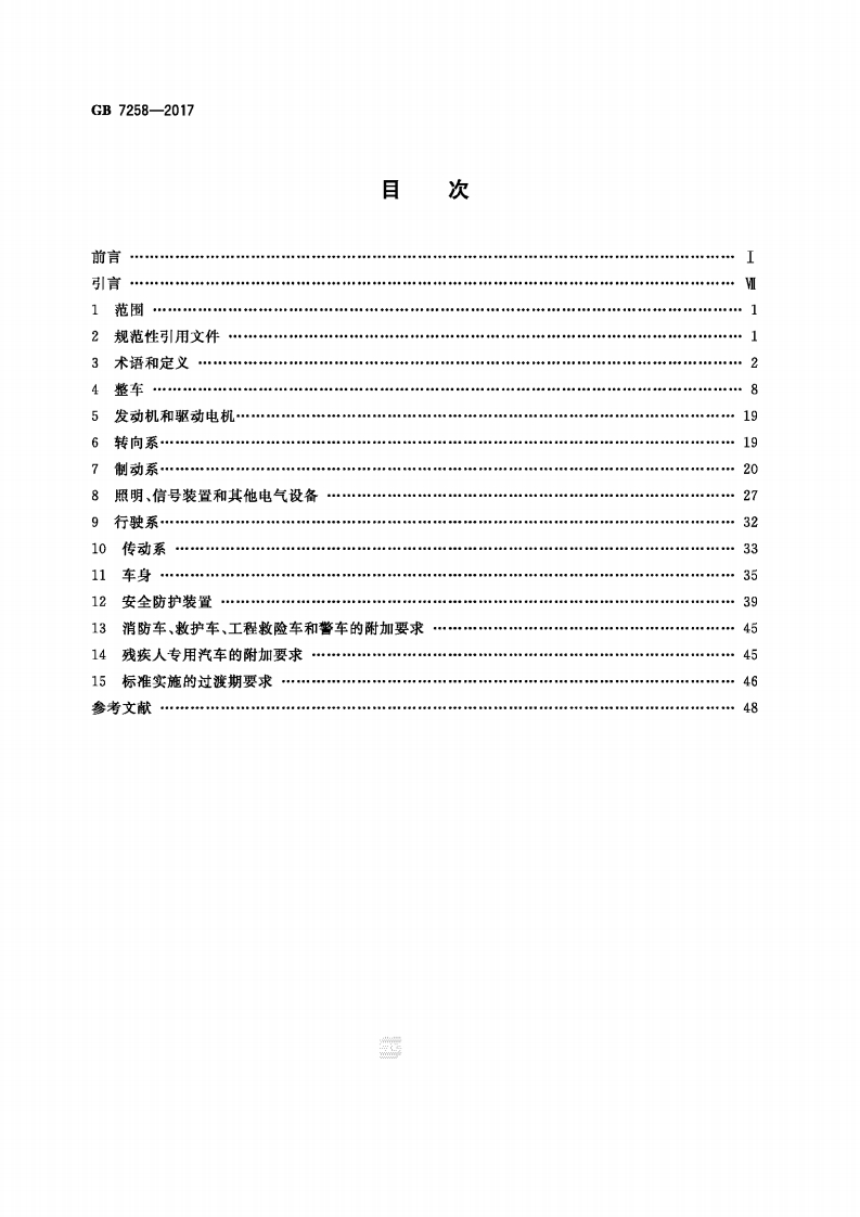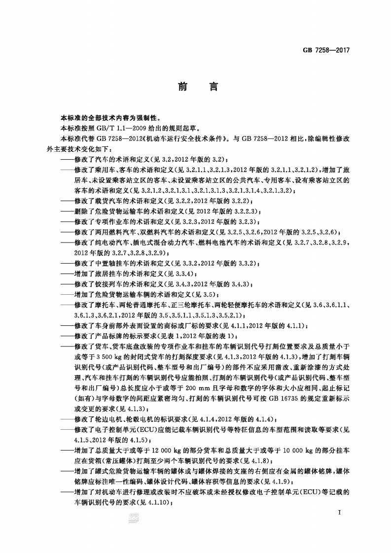 ICS43.020T09GB中华人民共和国国家标准GB7258-2017代替GB7258-2012机动车运行安全技术条件Technicalspecificationsforsafetyofpower-drivenvehiclesoperatingonroads348072@abc9天前发布关注私信2.85MB59页038ICS43.020T09GB中华人民共和国国家标准GB7258-2017代替GB7258-2012机动车运行安全技术条件Technicalspecificationsforsafetyofpower-drivenvehiclesoperatingonroads此内容为付费资源,请付费后查看¥19¥23黄金会员免费钻石会员免费立即购买您当前未登录!建议登陆后购买,可保存购买订单付费资源 第1页 / 共59页 第2页 / 共59页 第3页 / 共59页 试读已结束,还剩56页,您可下载完整版后进行离线阅读 THE END标准规范餐饮美食 文本预览 ICS43.020T09中华人民共和国国家标准GB7258一2017代替GB7258-2012机动车运行安全技术条件Technical specifications for safety of power-driven vehicles operating on roads2017-09-29发布2018-01-01实施中华人民共和国国家质量监督检验检疫总局中国国家标准化管理委员会发布 查看更多 收起部分 喜欢就支持一下吧收藏