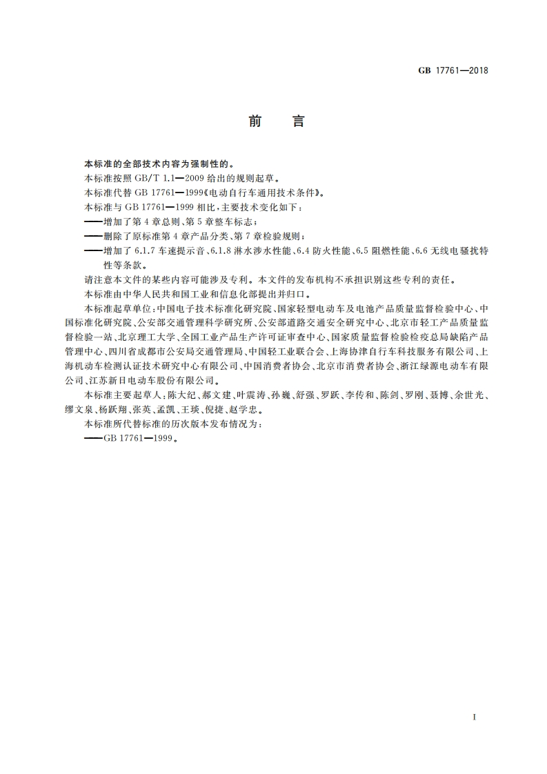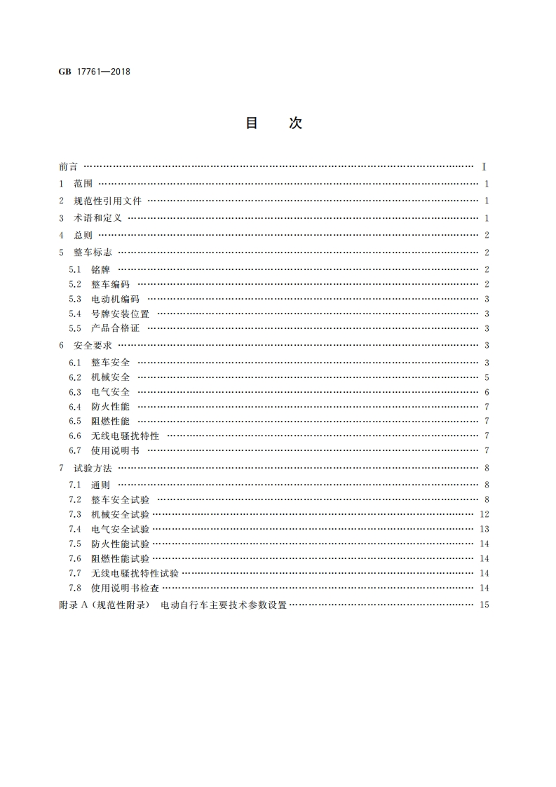 ICS43.140Y14GB中华人民共和国国家标准GB17761-2018代替GB17761-1999电动自行车安全技术规范Safetytechnicalspecificationforelectricbicycle348072@abc9天前发布关注私信1.33MB19页041ICS43.140Y14GB中华人民共和国国家标准GB17761-2018代替GB17761-1999电动自行车安全技术规范Safetytechnicalspecificationforelectricbicycle此内容为付费资源,请付费后查看¥19¥23黄金会员免费钻石会员免费立即购买您当前未登录!建议登陆后购买,可保存购买订单付费资源 第1页 / 共19页 第2页 / 共19页 第3页 / 共19页 试读已结束,还剩16页,您可下载完整版后进行离线阅读 THE END标准规范餐饮美食 文本预览 ICS43.140Y14B中华人民共和国国家标准GB17761-2018代替GB17761一1999电动自行车安全技术规范Safety technical specification for electric bicycle2018-05-15发布2019-04-15实施国家市场监督管理总局发布中国国家标准化管理委员会 查看更多 收起部分 喜欢就支持一下吧收藏