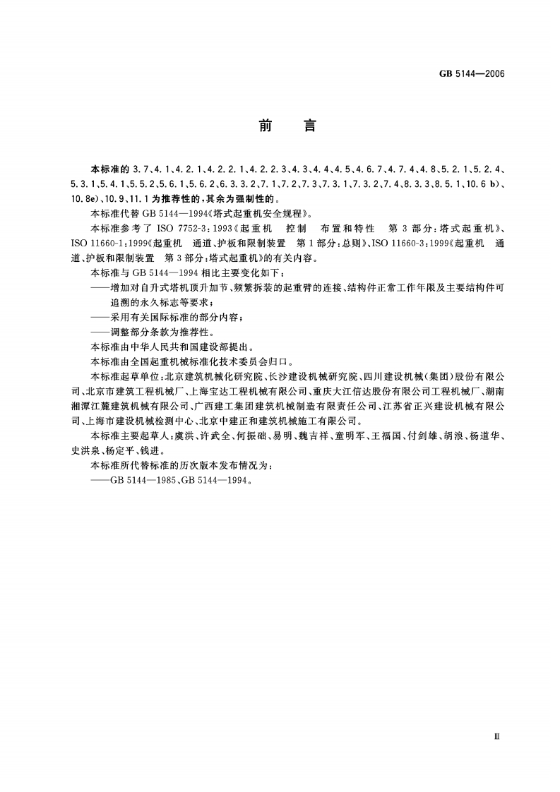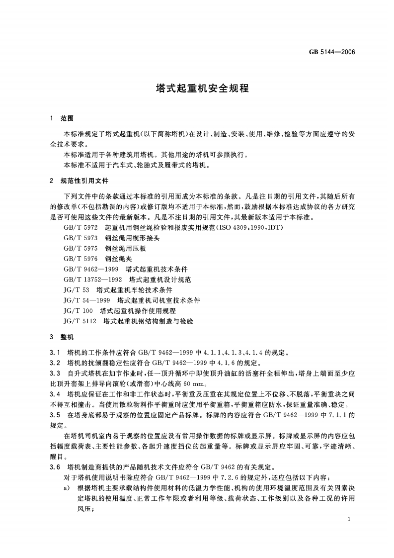 ICS53.020.2080G3中华人民共和国国家标准GB5144-2006代巷GB5144-1994塔式起重机安全规程Safetycodefortowercranes348072@abc8天前发布关注私信0.84MB17页026ICS53.020.2080G3中华人民共和国国家标准GB5144-2006代巷GB5144-1994塔式起重机安全规程Safetycodefortowercranes此内容为付费资源,请付费后查看¥19¥23黄金会员免费钻石会员免费立即购买您当前未登录!建议登陆后购买,可保存购买订单付费资源 第1页 / 共17页 第2页 / 共17页 第3页 / 共17页 试读已结束,还剩14页,您可下载完整版后进行离线阅读 THE END标准规范餐饮美食 文本预览 1CS53.020.20J80GB中华人民共和国国家标准GB5144-2006代替GB5144一1994塔式起重机安全规程Safety code for tower cranes2006-06-02发布2007-10-01实施中华人民共和国国家质量监督检验检疫总局发布中国国家标准化管理委员会 查看更多 收起部分 喜欢就支持一下吧收藏