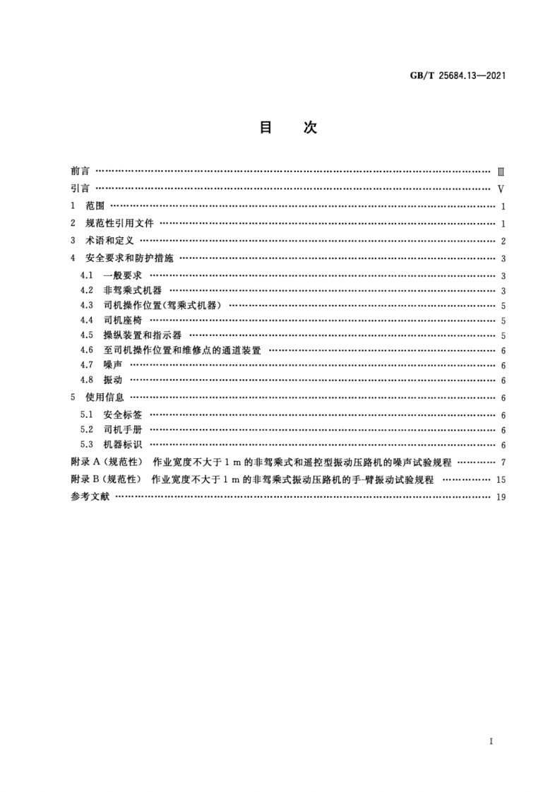 ICS53.100CCS P 97GB中华人民共和国国家标准GB/T25684.13一2021代替GB25684.13-2010土方机械安全第13部分:压路机的要求Earth-moving machinery-Safety-Part 13:Requirements for rollers(IS020474-13:2017,M0D)2021-12-31发布2022-07-01实施国家市场监督管理总局国家标准化管理委员会发布